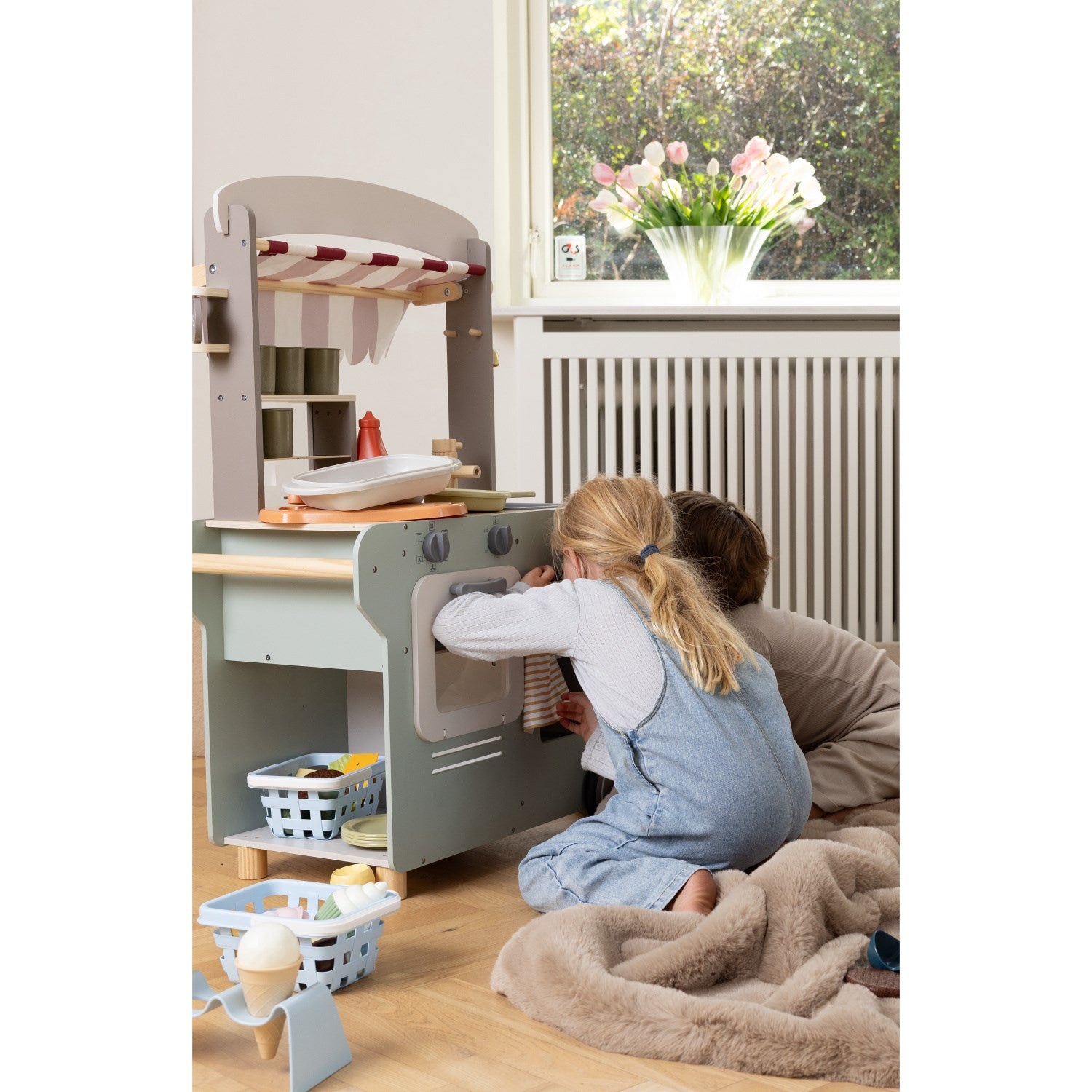 Oppdag gleden i hverdagen med vår sjarmerende "Dantoy Street Food Vogn Tre 26 Dele"! Inviter barna til en verden av rollespill og kulinariske eventyr med denne robuste trevognen designet for å stimulere deres fantasi og sosiale ferdigheter. Med funksjoner som en ovn for små pizzaer, en vask for vasking av grønnsaker, og en toppflatedesignet for å lage dagens spesialiteter, byr denne lekematen på endeløse timer med engasjerende og lærerik underholdning. Perfekt tilpasset barn fra tre år og oppover, sikrer dens runde former og bruk av rolige farger en trygg og tiltalende estetikk. Enkel å flytte med sine praktiske hjul, er det lett for barnet å ta med seg leken fra rom til rom eller til og med utendørs. Hvis lagring er en bekymring, frykt ikke. Dette kompakte kjøkkenet er like enkelt å rydde opp som det er å leke med. Ta i bruk "Dantoy Street Food Vogn Tre 26 Dele" og se barnet ditt utvikle sine ferdigheter gjennom lek – en perfekt måte å kombinere moro og læring på i trygge og kjente omgivelser.