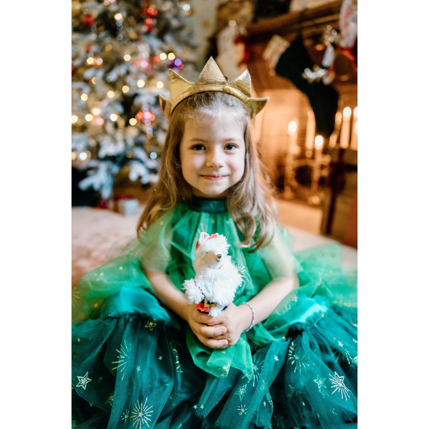 Oppdag magien med Great Pretenders Juletre-kjole med tilhørende hodeplagg — det perfekte antrekket for små drømmere i alderen 3-4 år. Denne betagende kjolen er designet med barnets sikkerhet i fokus, laget av flammehemmende materialer som også er robuste nok til å tåle lekse og bruk.