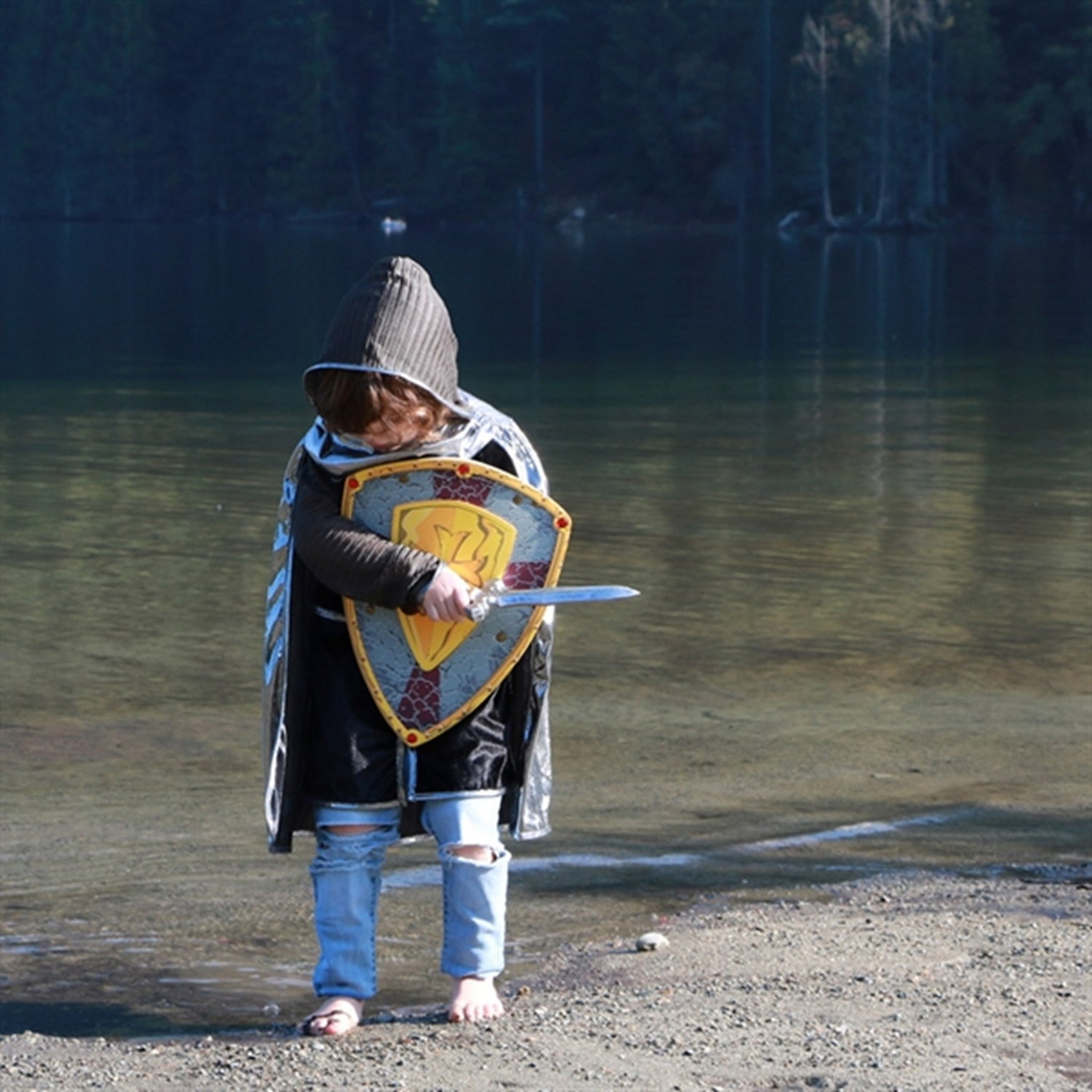 Oppdag gleden av å utforske middelalderens eventyr med Great Pretenders Crusader EVA Knight Shield! Dette leketøysskjoldet, designet med barns sikkerhet i tankene, er laget av slitesterkt og lett EVA-materiale, perfekt for små riddere fra 3 år og oppover. Skjoldets interaktive design fremmer både engasjement og læring gjennom lek, styrker barnets fantasi og koordinasjon. Enkel å bære, oppbevare og vedlikeholde, dette skjoldet gjør historisk lek både spennende og utdannende.