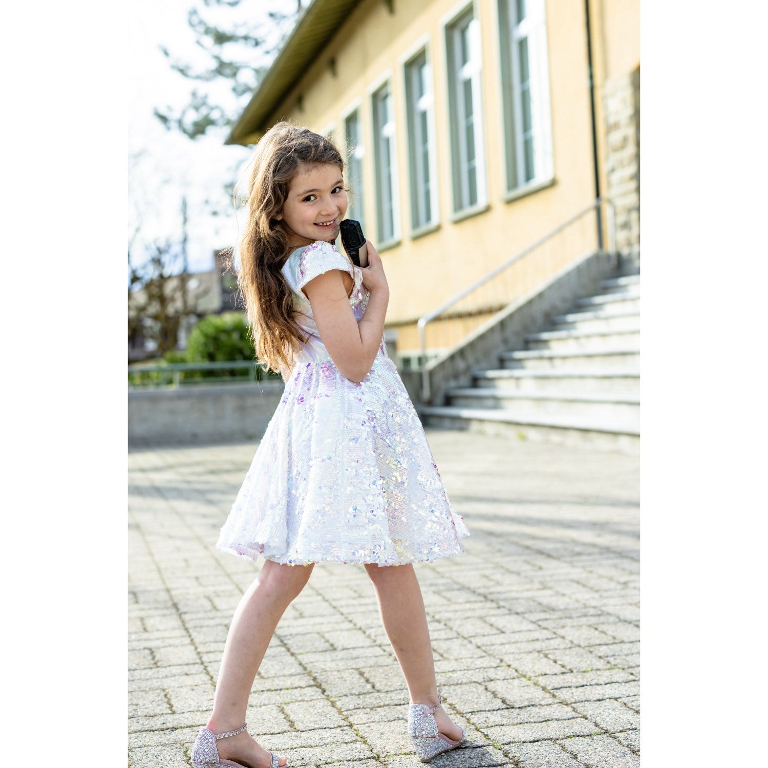 Gjør deg klar til å glitre og skinne med Great Pretenders Sequins Concert Queen-kjolen! Denne blendende kjolen er dekket av glitrende paljetter, perfekt for enhver aspirerende stjerne. Med en levende rosa nyanse og glitrende sølvaksenter er den designet for å få den lille til å føle seg som en superstjerne. Enten det er for en kostymefest eller bare en morsom dag med lek, lover denne kjolen å være en showstopper og tenne fantasien for storslåtte forestillinger. Se hvordan minidivaen din står i sentrum og lyser opp rommet med glamour og selvtillit! Ideell for barn som drømmer stort og glitrer mer. Materialer: Polyester, Spandex, Lastex, PET Vaskeinstruksjoner: Husk å følge vaske- og bruksanvisningen