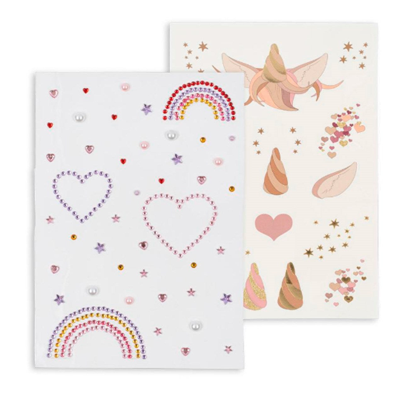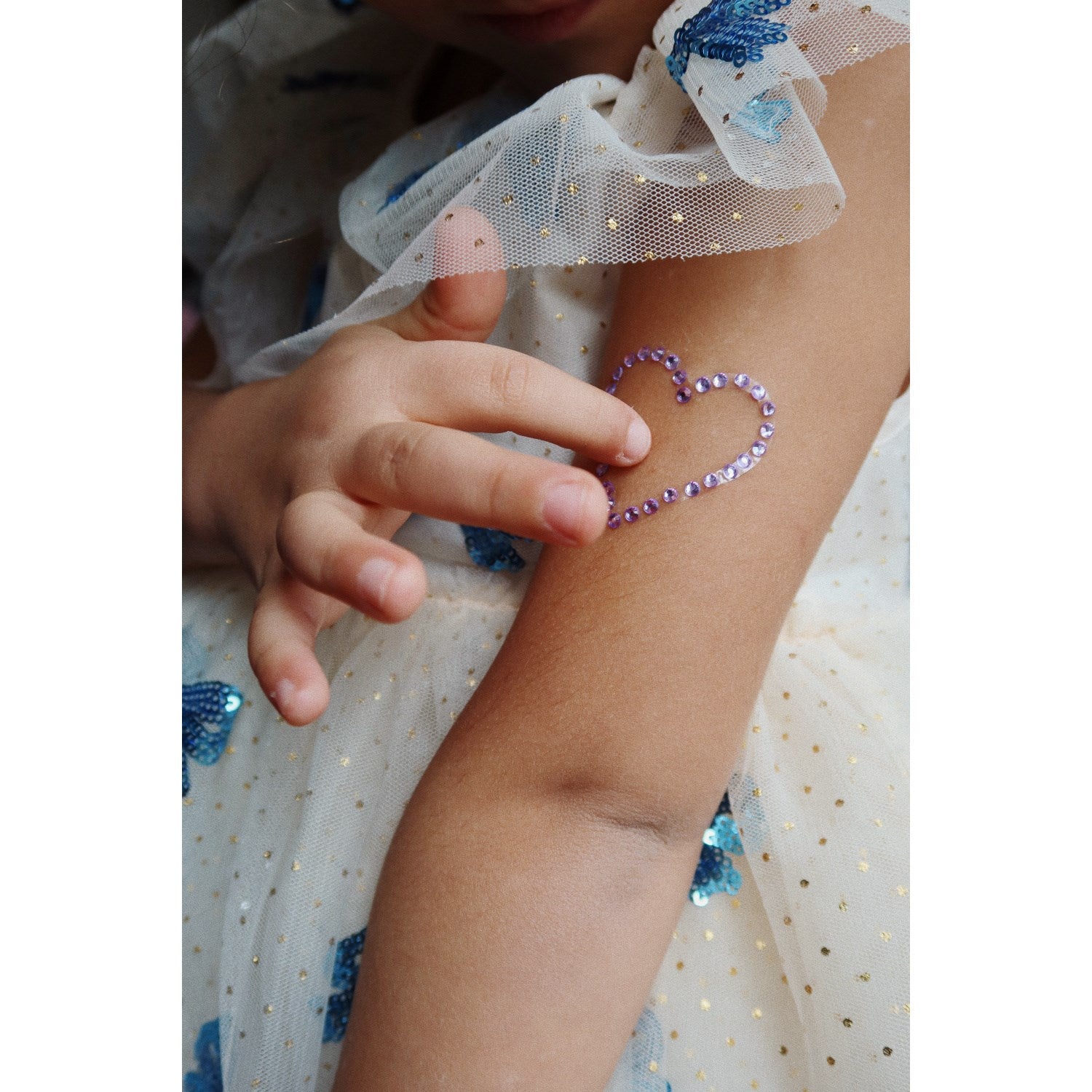 Oppdag gleden ved kreativ lek med Konges Sløjd Sett for jenter – Edelstener og Tatoveringer. Dette settet inneholder ett ark med fargerike, midlertidige tatoveringer og ett ark med små, skinnende perlesteiner som balanserer perfekt mellom kreativ moro og sikkerhet. Settet er formulert for maksimal engasjement og lett bruk, egnet for barn over 3 år, og gir timevis med underholdning mens det styrker de smås fine motorikk og kreativ tenkning.
