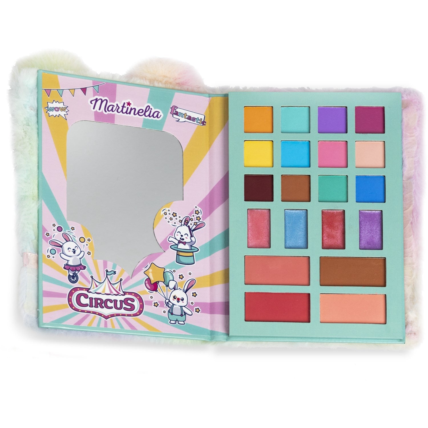 Oppdag Martinelia Circus Super Wallet – en fantastisk lekesett som er perfekt for små makeup-entusiaster! Denne sjarmerende plysjvesken er fylt med en rekke trygge kosmetiske produkter, spesielt laget for barn. Inneholder 12 øyenskygger, 4 lipglosser og 4 blush/bronzere, hver formel er utviklet for å være skånsom mot barnehud.