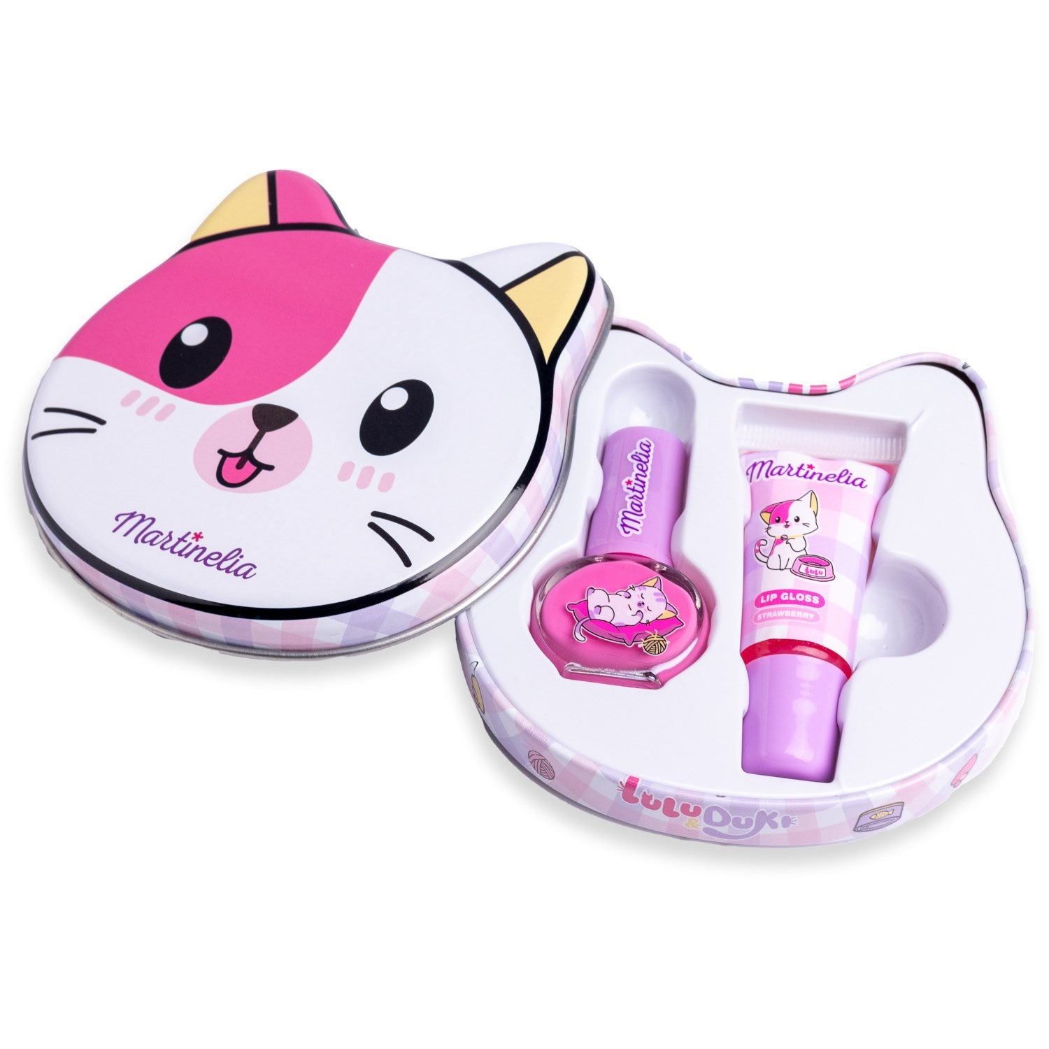 Oppdag den sjarmerende Martinelia Lulu&Duki Glam Tin, en perfekt gave for de små som elsker å pynte seg. Inneholder neglelakk og lipgloss i en søt tinnboks som er både trygg og enkel å oppbevare. Dette settet er ideelt for barn og tilbyr morsomme, interaktive lekeøyeblikk, samtidig som det er utformet for å være enkelt for små hender å bruke. Med sin kompakte størrelse er det enkelt å ta med på tur og ryddig å lagre når leken er over.