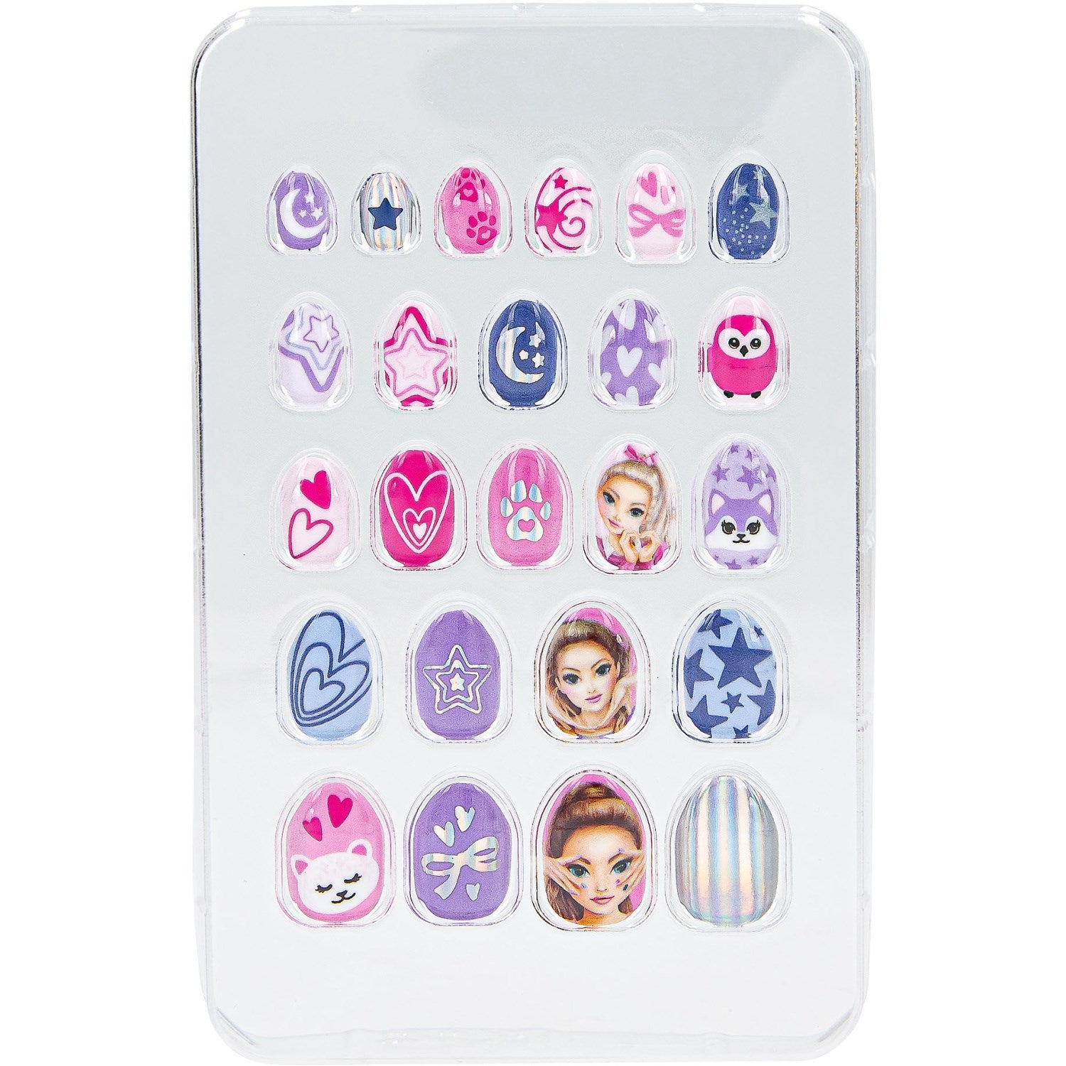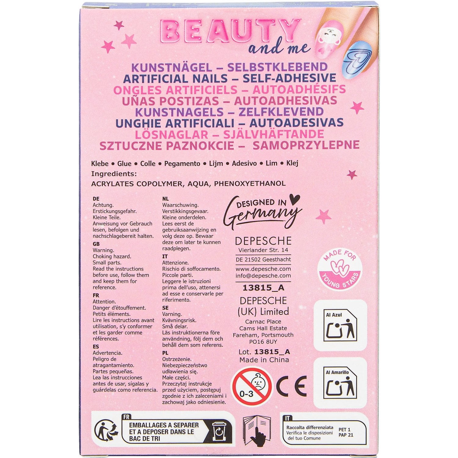Gjør barnehendene ekstra stilige med TOPModel Beauty and Me kunstige negler. Dette settet inneholder 24 selvklebende negler i en tiltalende blanding av rosa og lilla nyanser, perfekt avsmalnet og dekorert med glitrende design. Enkle å påføre og fjerne kun med vann, disse neglene tilbyr både lek og læringsverdi gjennom kreativ utfoldelse. Ideal for barn som elsker å leke med stil og uttrykke sin personlighet.