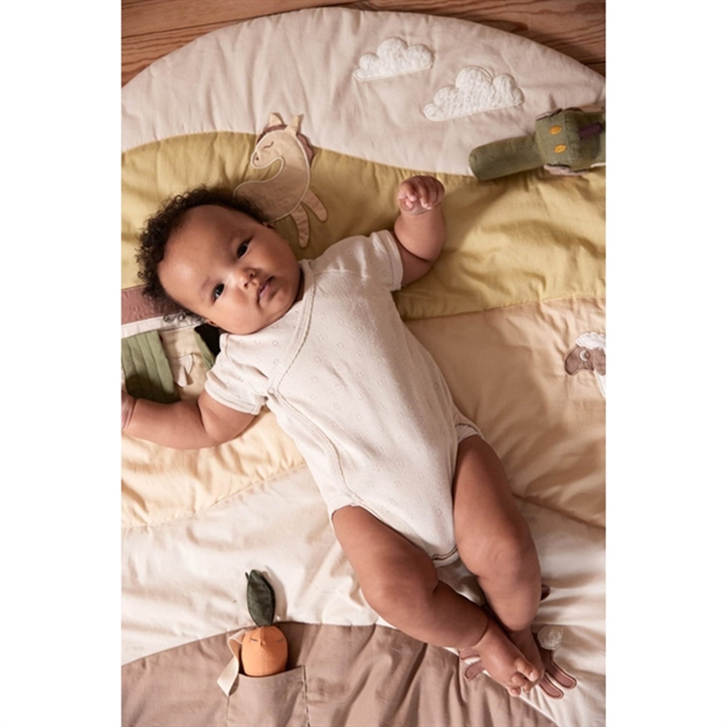 Teppet er designet med tanke på småbarnets sikkerhet og komfort, produsert i myk økologisk bomull og mildt polstret med resirkulert polyester. Den rolige fargepaletten sikrer at teppet harmonerer med ethvert hjemmemiljø.