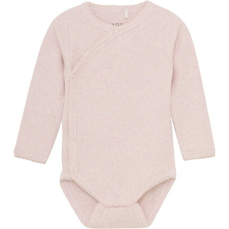 50 56 62 68 74107,50 kr215,00 krEnhetspris /Ikke tilgjengeligFIXONI Bleached Mauve Melange Omslags Body Ls Melange Rib