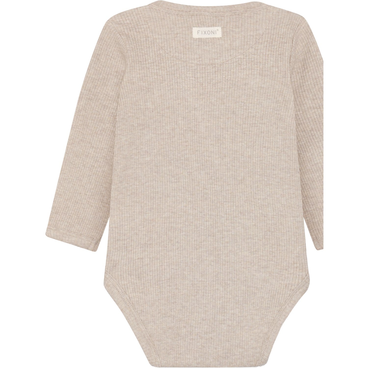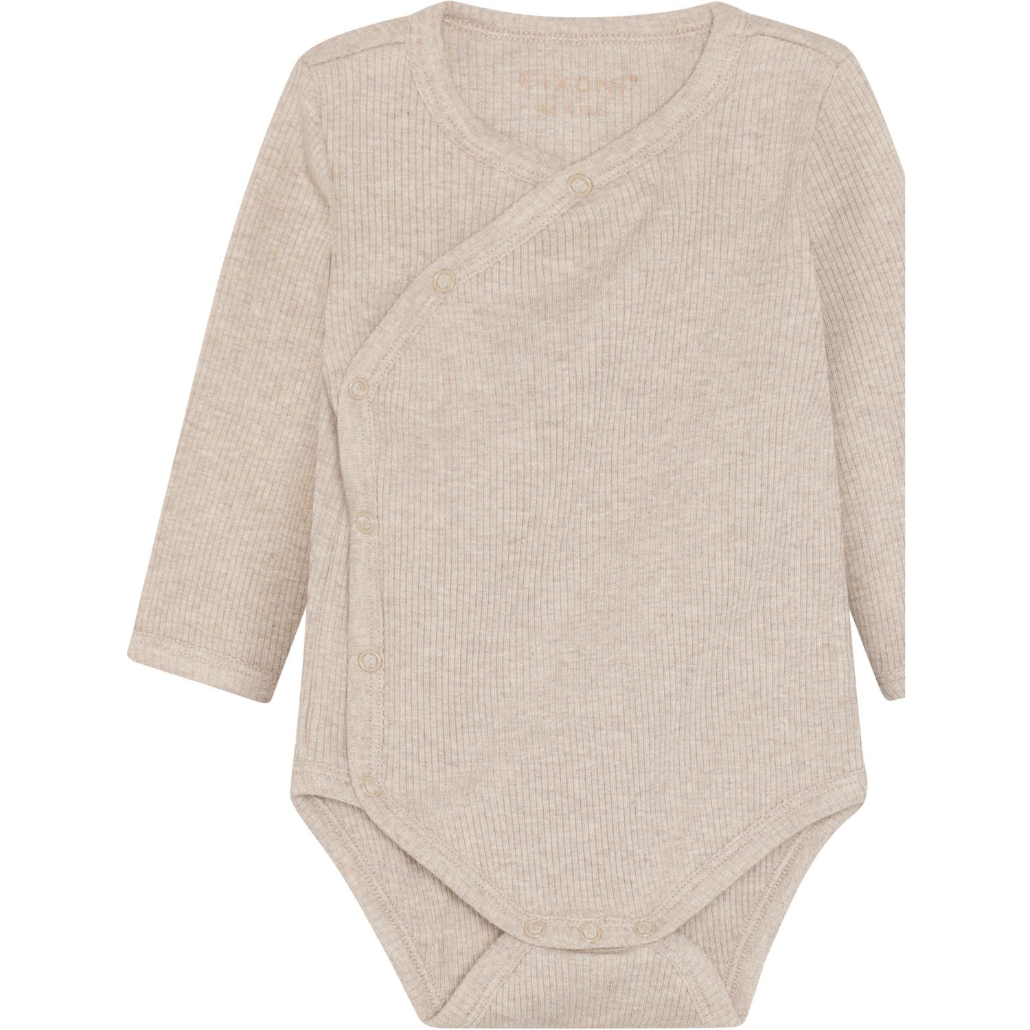 Oppdag den myke følelsen av FIXONI Pure Cashmere Melange Omslags Body ls i melange rib. Denne ensfargede bodyen har en praktisk omslagsdesign med trykknapplukking som gjør påkledning lekende lett. Bodysuiten er fremstilt i ribbet stoff for en elastisk og behagelig passform, ideell for barnets aktive dager. Tilknyttede trykknapper mellom bena sikrer at alt holder seg på plass, mens det slitesterke TENCEL™-materialet gir en ekstra dose mykhet og holdbarhet. Blandingen av luksuriøs cashmere og moderne teknologi gjør dette til et ypperlig valg for din lille, både til hverdags og ved spesielle anledninger.