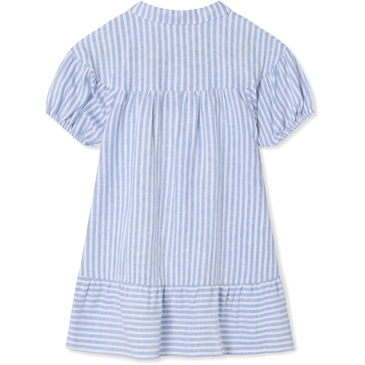 Snurr deg gjennom eventyr i Fliink Dream Blue/Cloud Dancer Vira-kjolen! Med sine sjarmerende puffy korte ermer og en leken volangbunn, lover dette plagget uendelig innfall og komfort. En brodert due som holder en rose på åket, gir et snev av magi. Den løse passformen og button-down fronten, kombinert med en myk lin-viskose-blanding, sikrer både stil og letthet for ethvert eventyr. Perfekt for drømmende dager under solen eller for å samle komplimenter på enhver fest! Klar til å fortrylle i drømmende striper av blått og skydanserhvitt. **Vedlikeholdstips:** Skånsom vask for å holde fortryllelsen i live!