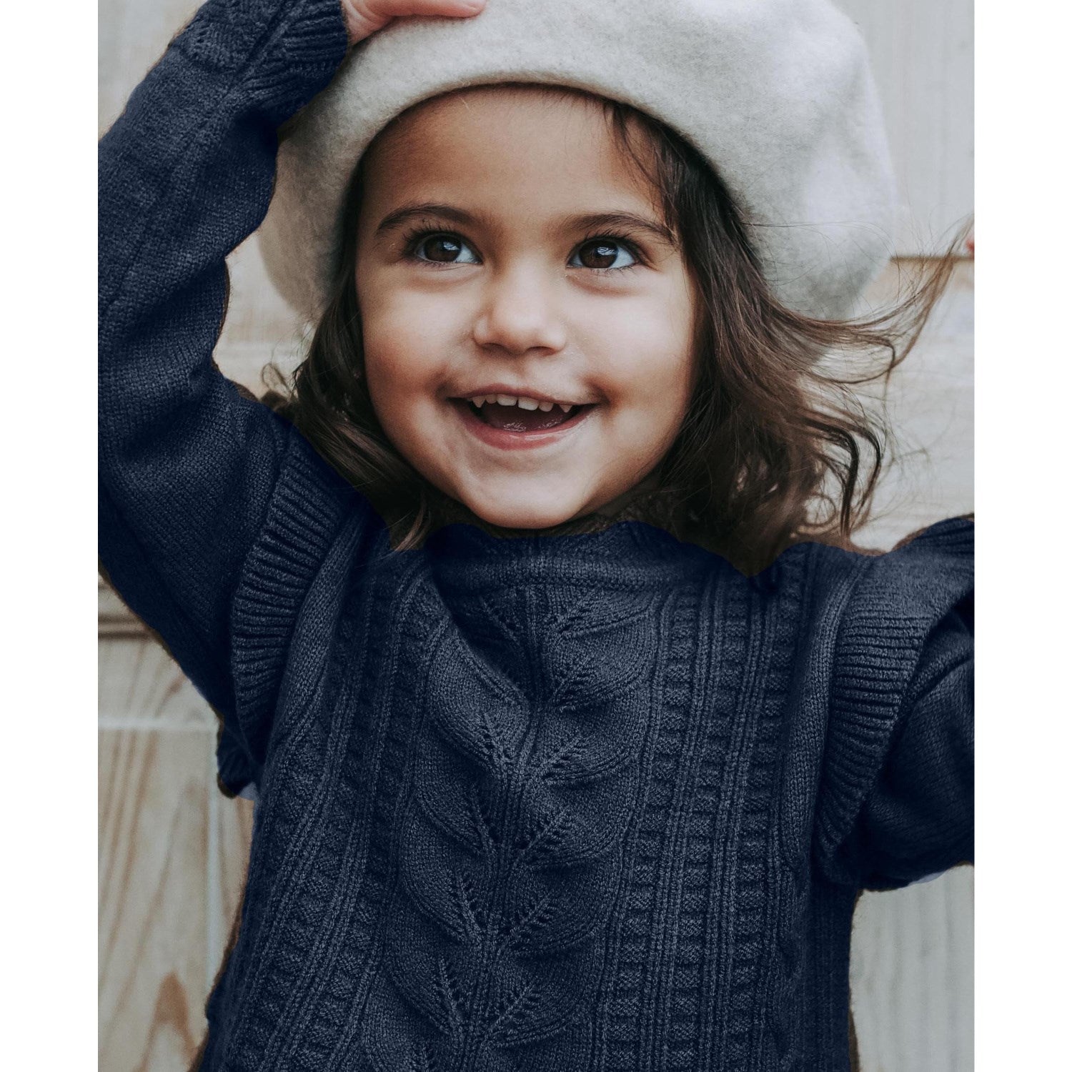 La barnet ditt skinne i en Fliink Insignia Blue Alilly Peplum Pullover, en strikket bluse som kombinerer komfort med stilfulle detaljer. Denne nydelige genseren er laget av 50% LENZING™ ECOVERO™ viskose, 27% nylon og 23% polyester, noe som sikrer både mykhet og holdbarhet. Designet med en flatterende bølget krage og sjarmerende mønstrede detaljer ved ermeåpninger og nederst, tilbyr den en leken vri med volanger på skuldrene som gir et søtt og elegant utseende.