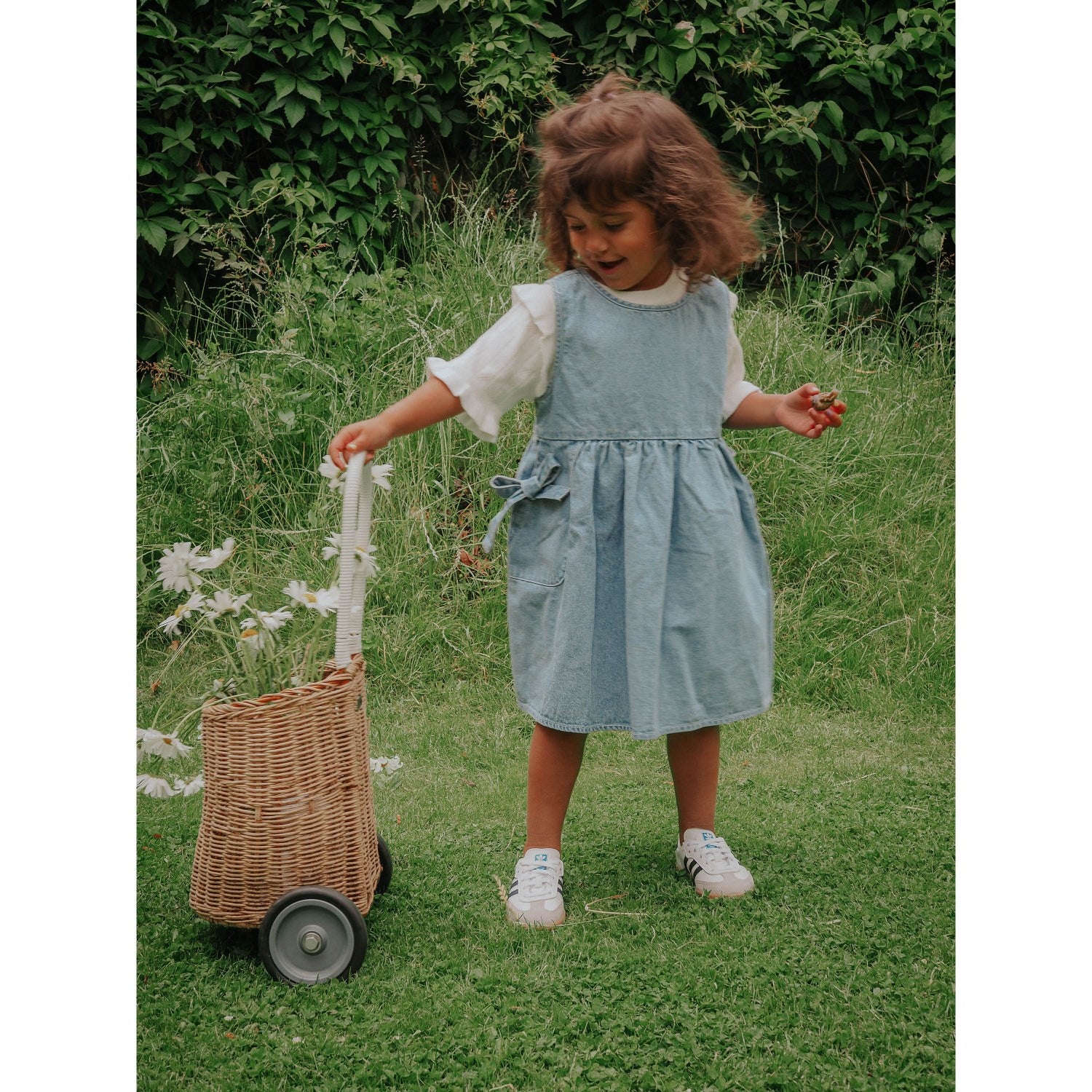 Gå inn i stilen med Fliink Light Denim Blue Don Denim Spencerdress! Denne sjarmerende spencerkjolen er laget av 100 % myk bomull og har en rund hals og en løs, luftig passform med et midjesnitt for å gi volum til skjørtet. Den er utsmykket med søte sløyfelommer og et slips bak for en tettsittende passform eller bare for å legge til en stilig sløyfedetalj, og er perfekt for lekne dager ute. I tillegg er den enkel å ta vare på – bare maskinvask skånsom og la den tørke flatt for varig sjarm!