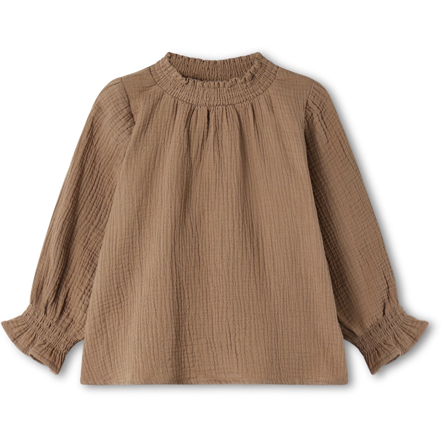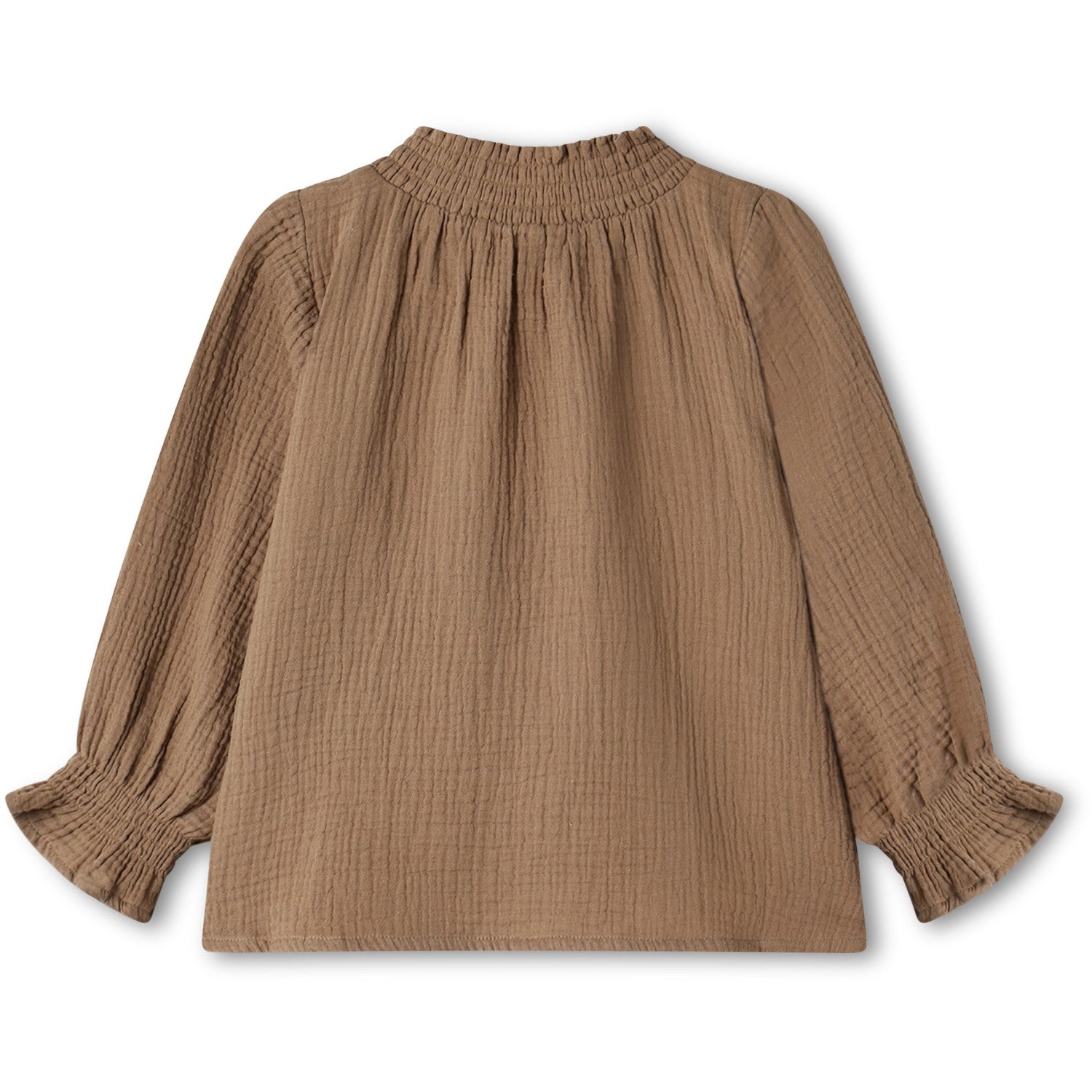 Gled barnet ditt med denne nydelige Fliink Pine Bark Paco Ls Blusen, perfekt for både lek og hverdagsbruk. Laget av 100% myk bomull i musselinkvalitet, tilbyr blusen ekstraordinær komfort og bevegelsesfrihet takket være det løse snittet og elastiske elementer rundt nakke og armer. En sjarmerende volangdetalj nederst på de lange ermene legger til et stilfullt preg. Den naturlige fargen og det tidløse designet gjør denne blusen enkel å matche med yndlingsbuksene. Vaskes forsiktig på 30°C i maskin.