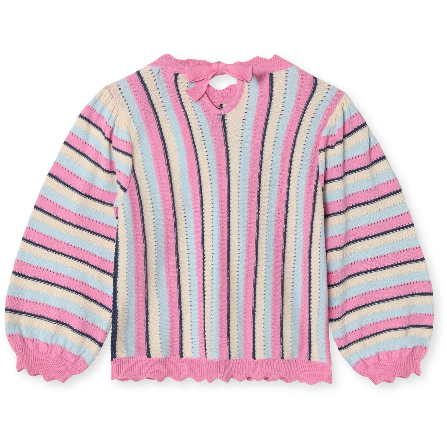 Gå inn i leken sjarm med denne koselige, strikkede langermede blusen, designet for både komfort og stil. Den er laget av 100 % myk bomull og har livlige flerfargede striper som fanger blikket. Blusen byr på sjarmerende detaljer som ribbestrikkede kanter med delikate sløyfer og voluminøse ermer for et snev av lunefullhet. En praktisk knytelukking bak sikrer en tettsittende passform, noe som gjør den perfekt for eventyr hele dagen. Det er enkelt å vaske og ta vare på dette plagget, noe som sikrer at det holder seg friskt og fantastisk dag etter dag.