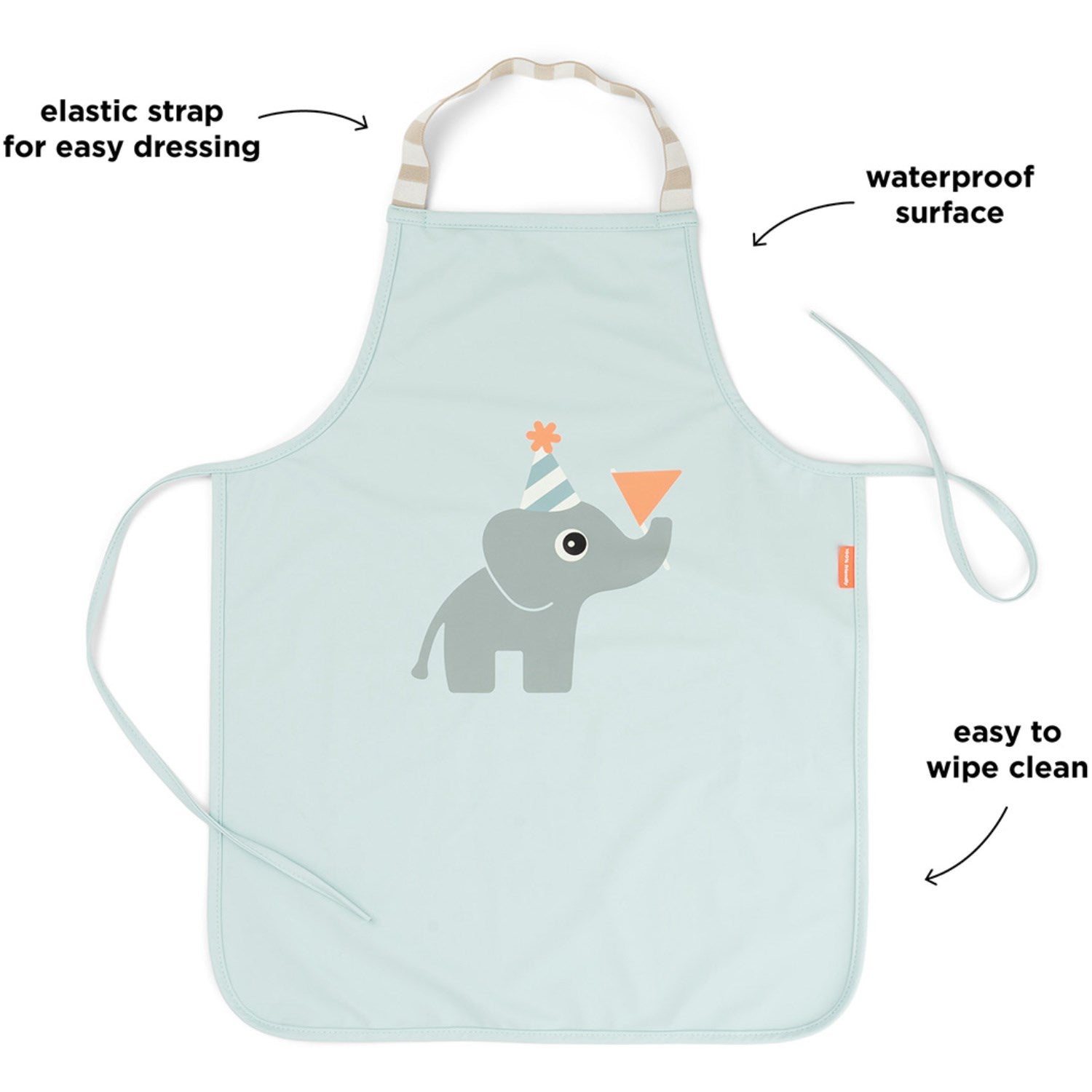Gjør måltider og kreative øyeblikk til en ren fornøyelse med DonebyDeer Celebration Blue Vandtæt Barneforkle! Dette slitesterke forklæet er designet med barnas selvstendighet i tankene, takket være den elastiske løkken som gjør det enkelt for små hender å ta det av og på selv. Den lange, ugjennomsiktige overflaten er vanntett, noe som beskytter barnas klær under både matlaging og kunstneriske prosjekter, samtidig som den er enkel å tørke av og vedlikeholde.
