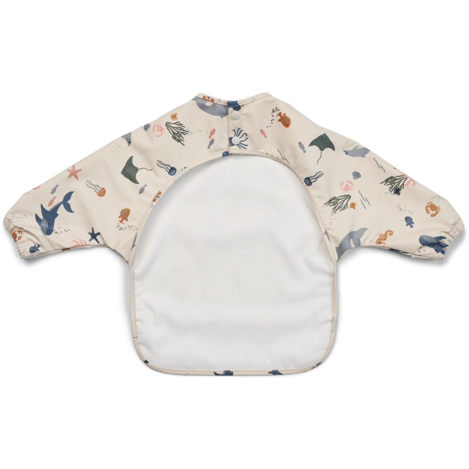 Oppdag den perfekte løsningen for måltidene med LIEWOOD Sea Creature / Sandy Merle Printed Cape Smekke. Dette forkleet er designet med lange ermer og vannavstøtende materiale for å holde barnet tørt og rent. Elastiske mansjetter og en praktisk catch-all frontlomme sikrer at søl blir minimalt. I tillegg er smekken lett å vedlikeholde da den kan vaskes i maskin, noe som gjør hverdagen enklere for både små og store. Et morsomt og funksjonelt tillegg til barnets spisetid! Materialer: 100 % resirkulert polyester Mål: Ermeslutt til ermeende: Lengde (cm) 43. Ermeslutt til ermeslutt: Bredde (cm) 82 Vaskeinstruksjoner: Vask ved eller under 30'C, ikke bløtlegg; Bruk vaskemiddel uten blekemiddel; Vask med lignende farger; Ikke bruk tøymykner; Ikke vri eller vri;, Ikke stryk, Ikke tørketrommel, Må ikke renses, Må ikke blekes