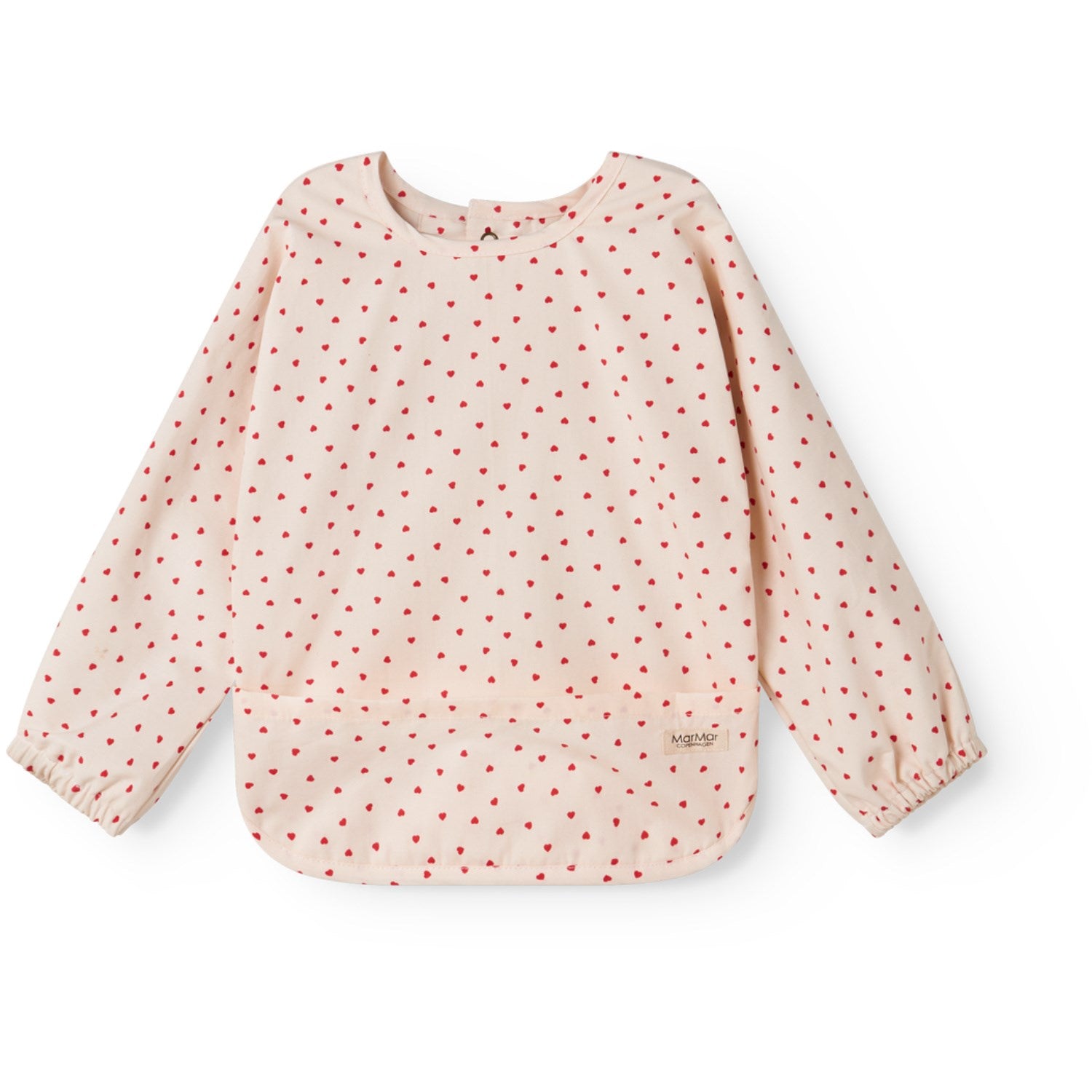 La din lille hjelper skinne på kjøkkenet med MarMar Cotton Percale Home Happy Hearts Apron LS! Dette sjarmerende langermede forkleet har en smart frontlomme og elastikk ved håndleddene for en perfekt passform. Lett å sette på med trykknapper rundt halsen og laget av vannavstøtende materiale, så det er lett å holde rent. Perfekt for små kokker som elsker å bake og ha det moro!