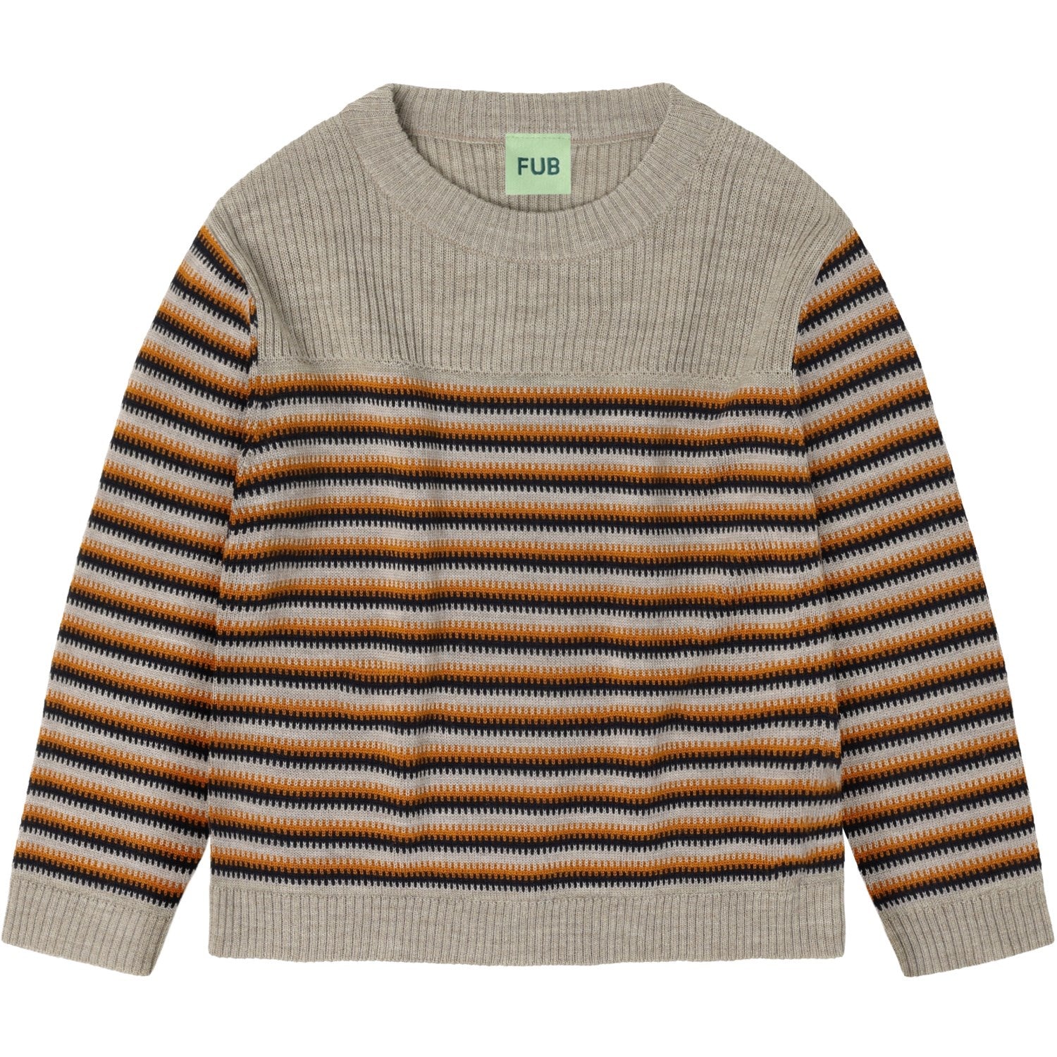 Gjør hverdagen lunere med FUB Oat Melange Thin Sweater! Denne delikate genseren er nøye strikket av 100 % OEKOTEX®, RWS- og BLUESIGN-sertifisert merinoull, og sikrer ikke bare kvalitet men også miljøvennlighet. Designet er tidløst med en myk rund hals, elegante ribbestrikkede detaljer og et sjarmerende grafisk stripemønster på underkroppen og ermene.