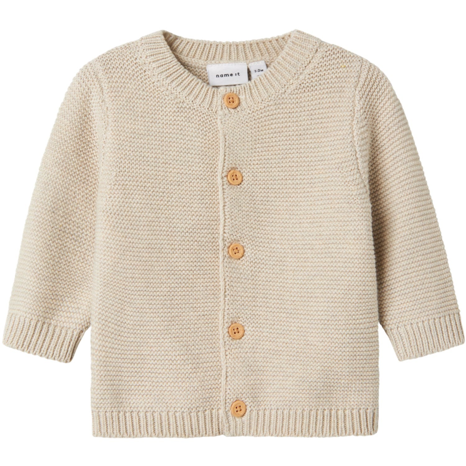 Gi barnets garderobe et løft med denne stilige strikkede cardiganen fra Name It. Peyote Melange Timmi Strikk Cardigan er perfekt for å skape et komfortabelt, men trendy antrekk. Cardiganens unike strukturstrikk gir en fengslende tekstur og et moderne utseende med sin 3D-effekt. Dette plagget har en klassisk rund hals, lange ermer og praktiske ribbestrikkede mansjetter som øker komforten. Lukkes enkelt med knapper foran og har en normal passform som sikrer god bevegelighet for barnet. Vær oppmerksom på sikkerhetsinstruksjonene, og hold plagget unna åpen ild.