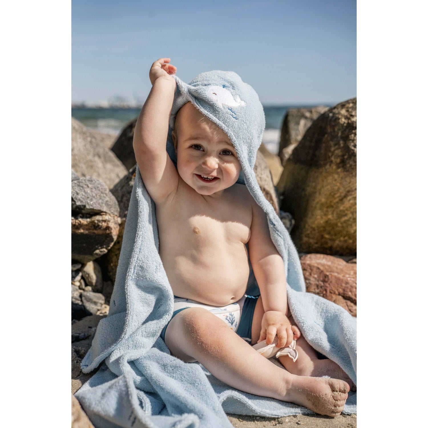 FILIBABBA Christian's Whale Tales Broderet Badehåndklæde Med Hette GOTS