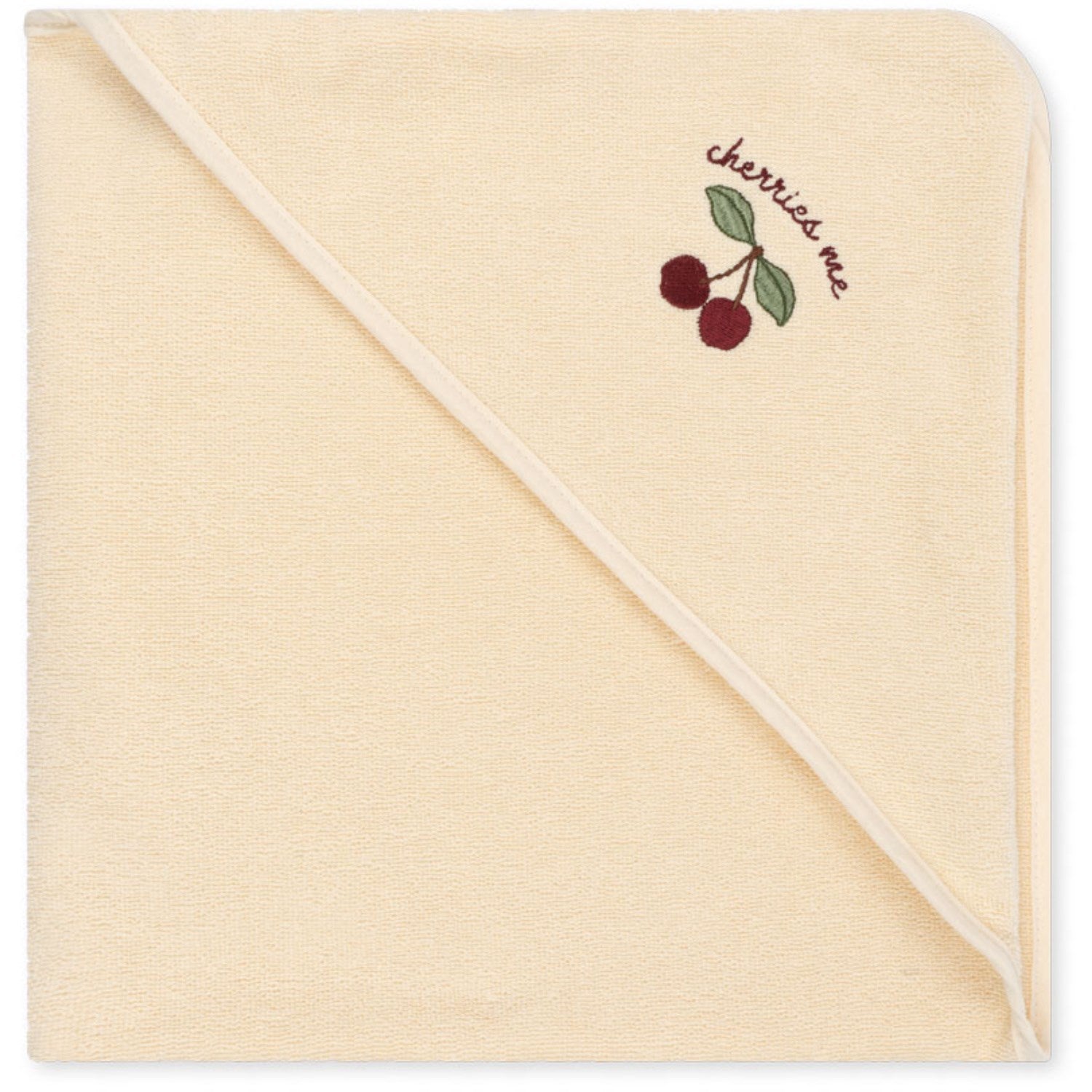 Gjør badeøyeblikkene enda koseligere med Konges Sløjd Cherry Terry håndkle med broderi! Dette håndkleet er GOTS-sertifisert, noe som betyr at det er produsert med strenge standarder for økologi og sosialt ansvar. Det myke, absorberende materialet og den delikate kirsebærbroderingen gjør det ikke bare praktisk, men også søtt og underholdende for ditt barn. Håndkleet er designet for å være enkelt å bruke og vedlikeholde, og det kan lett lagres på grunn av sin ideelle størrelse. Perfekt for daglig bruk, og det sørger for at din lille er komfortabel og underholdt etter et bad.