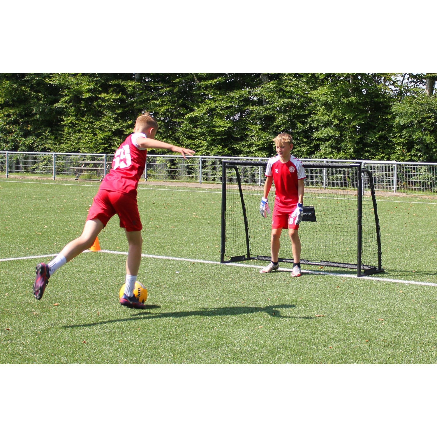 Gled barna med My Hood Munich fotballmål, perfekt for hageaktiviteter og utendørslek. Dette målet tilbyr sikkerhet og holdbarhet med sin robuste konstruksjon i galvanisert stål og svart pulverlakk. Med en rørdiameter på Ø38 mm og veggtykkelse på 1,5 mm, gir det stabilitet under alle klimaforhold. Inkludert svart målduk fremmer presisjonstrening, gjør det både underholdende og pedagogisk for barn i forskjellige aldre. Lett å sette opp, lagre og vedlikeholde, blir dette fotballmålet en favoritt blant barna og en enkel tilføyelse til enhver hage.