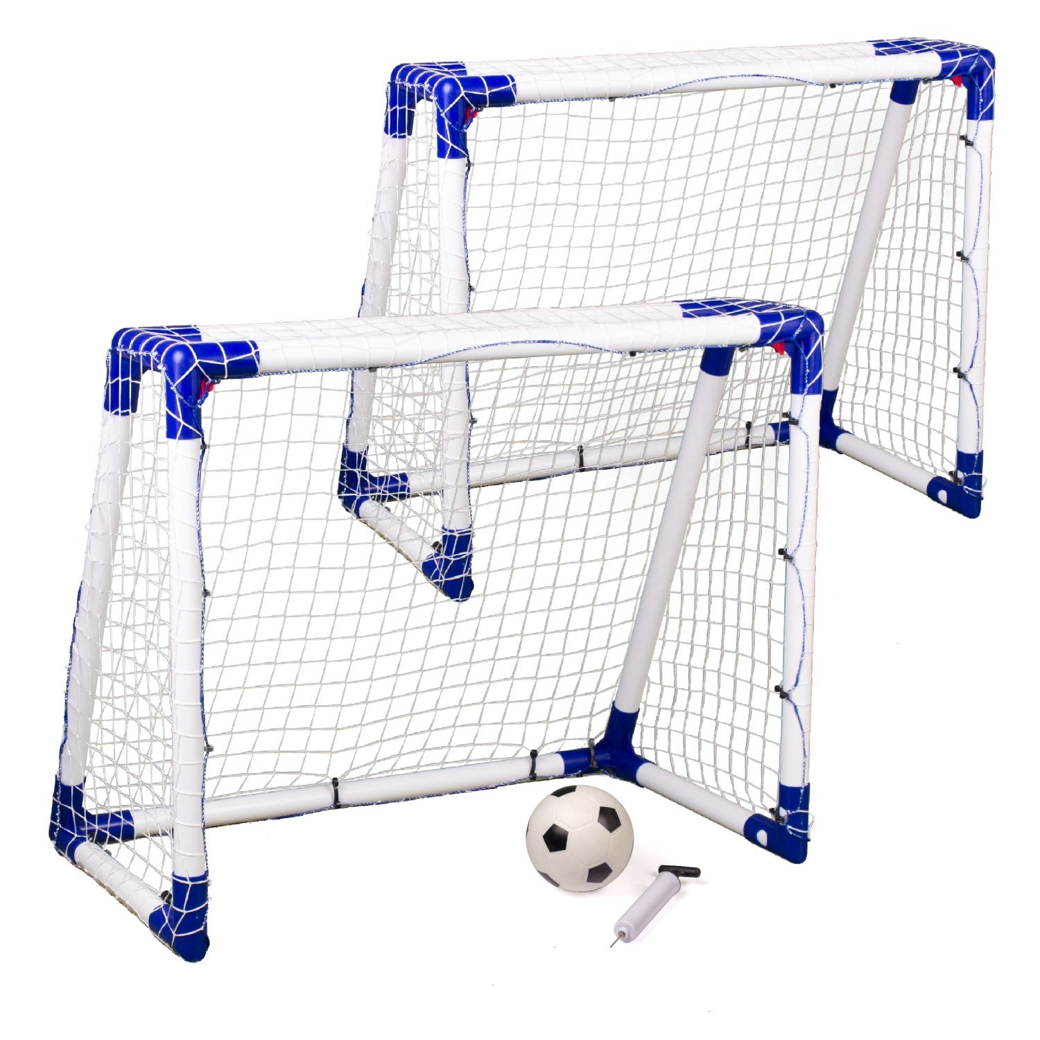 - Ekstra: 2 fotballmål, 1 plastball og 1 pumpe Fotballmål: 110 x 90 x 60 cm Liten ball i plast Materiale: Plast Ø44 mm nett med 5x5 cm masker