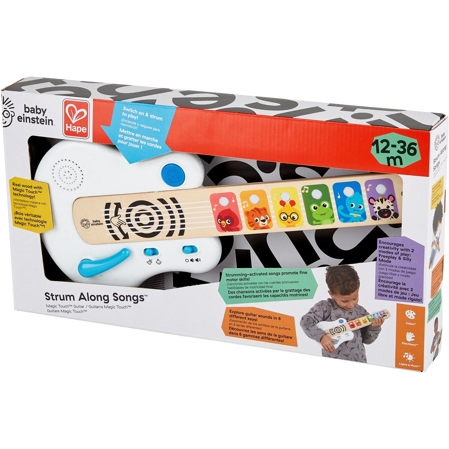 Oppdag gleden av musikk med Hape Baby Einstein Magic Touch Guitar! Denne innovative gitaren gir barna muligheten til å utforske musikalske toner gjennom enkel berøring. Med sine to engasjerende moduser, Magic og Fun, kan små musikere enten fremføre kjente melodier eller eksperimentere med morsomme dyrelyder, noe som stimulerer både kreativitet og læring. Designet med lyse farger og forskjellige teksturer, tilbyr gitaren multisensorisk stimulering, perfekt tilpasset barnets utvikling. Lett og enkel å lagre, sikrer den også sikker lek og enkel vedlikehold. Ideell for små håndterere, denne gitaren er ikke bare et instrument, men en kilde til uendelig underholdning og pedagogisk utvikling.