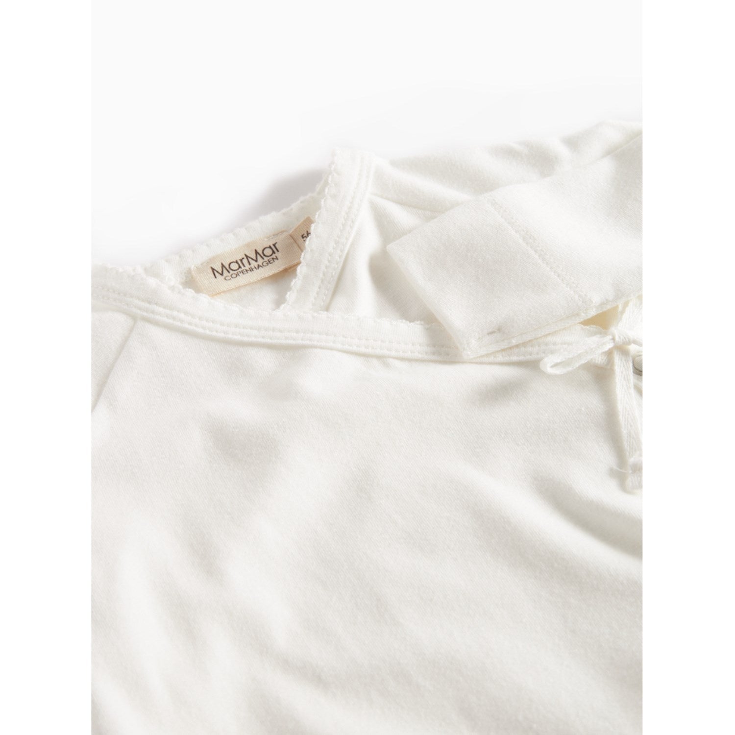 Gled ditt nyfødte barn med denne stilfulle og komfortable heldressen fra MarMar. Laget i myk modal, gir denne hvite langermede omslagsromperen både funksjonalitet og eleganse med dens enkle trykknapper og bånd som strekker seg fra halsen og langs benet. Perfekt tilpasset for lett påkledning, og sørger for at din lille holder seg komfortabel og bevegelig. Et must for den lille garderoben! Ideal for både hverdagsbruk og spesielle anledninger.