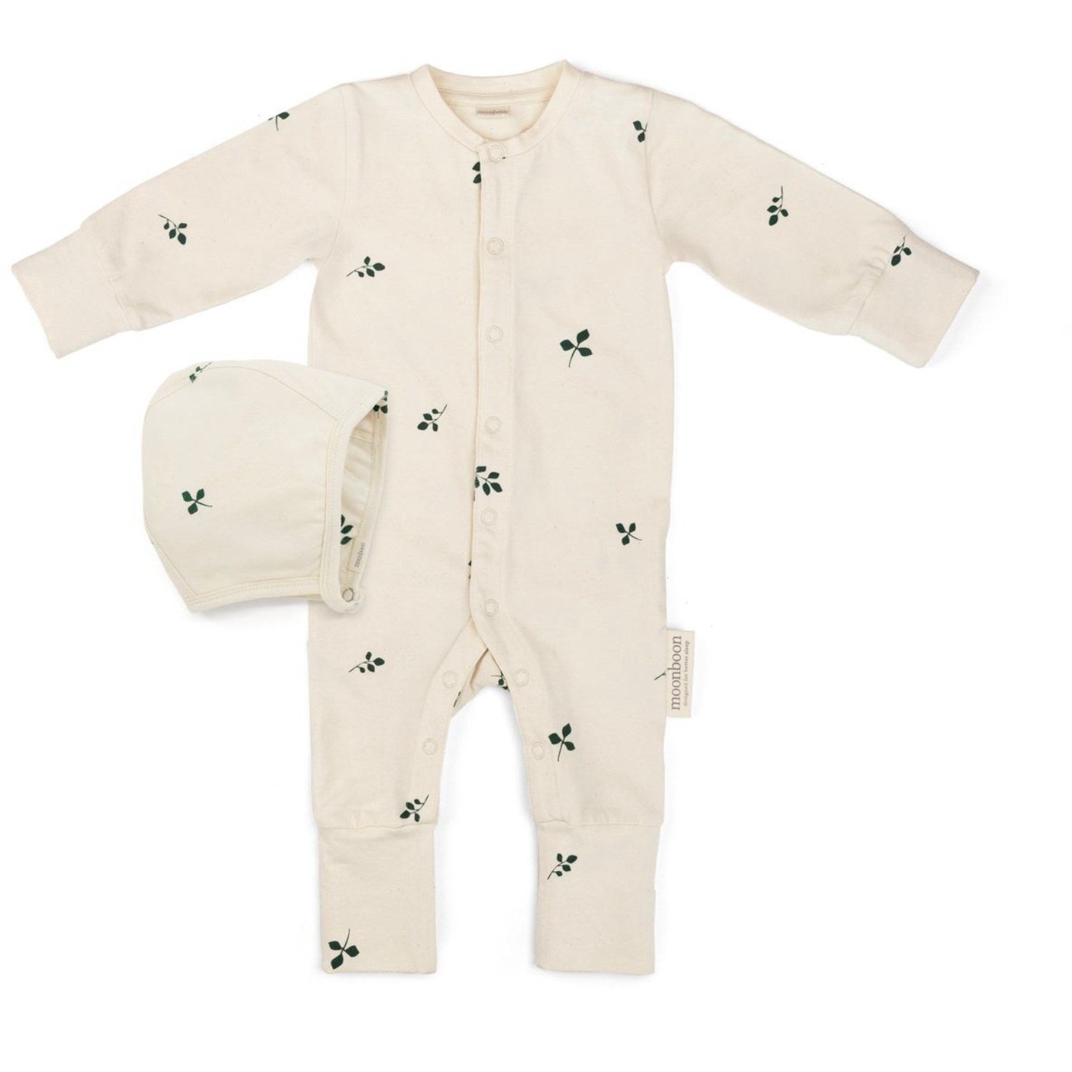 Tilgjengelig i fire tidløse farger, passer Moonboon Leaf Sparkedragt & Hue perfekt til både søvn og lek. Hver gaveeske kommer med en gratis godnatthistorie, ideell for å innby til søte drømmer, og gjør dette settet til en perfekt gave som både er funksjonell og fasjonabel. Velg dette settet for å kombinere stil, mykhet og praktisk funksjonalitet i ditt barns hverdagsliv. Materialer: 95 % økologisk bomull / 5 % elastan Vaskeinstruksjoner: Ingen tørketrommel, Strykejern på middels varme, 40 grader, Ingen blekemiddel, Ingen renseri, Holdes unna ild Sertifiseringer: GOTS Økologisk, OekoTex Standard 100