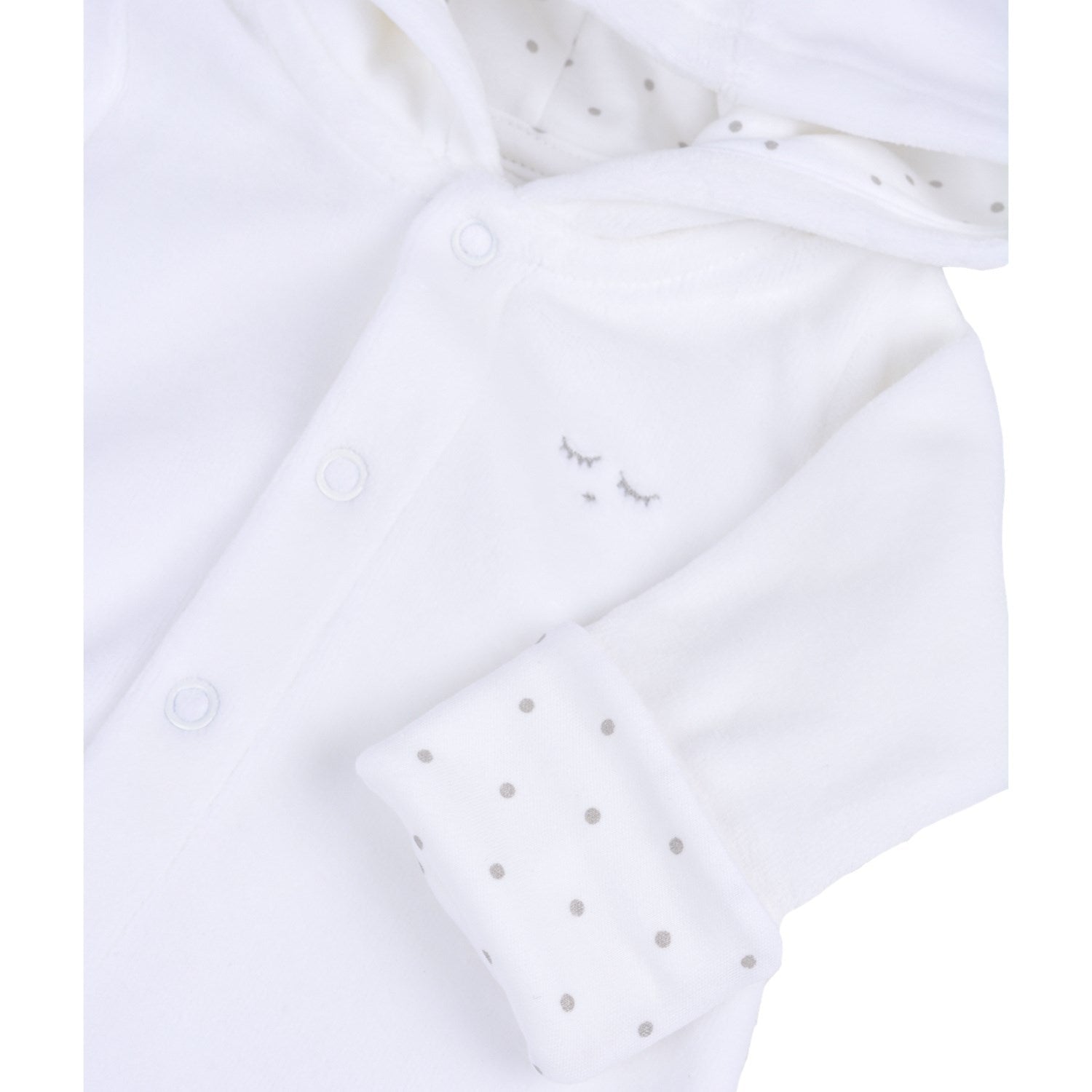 Denne sjarmerende Livly White Plush Bunny one-piece er perfekt for små som elsker å leke og utforske! Laget av en myk bomullsblanding, sikrer den total komfort og bevegelsesfrihet. Dressen er dekorert med sølvgrå prikker og har praktiske trykknapper fra halsen og ned til anklene for enkel påkledning. Hetten, komplett med søte kaninører, gir en skvett eventyr til hverdagen. Ideell for både lek og lur, og et søtt tillegg til enhver babygarderobe.