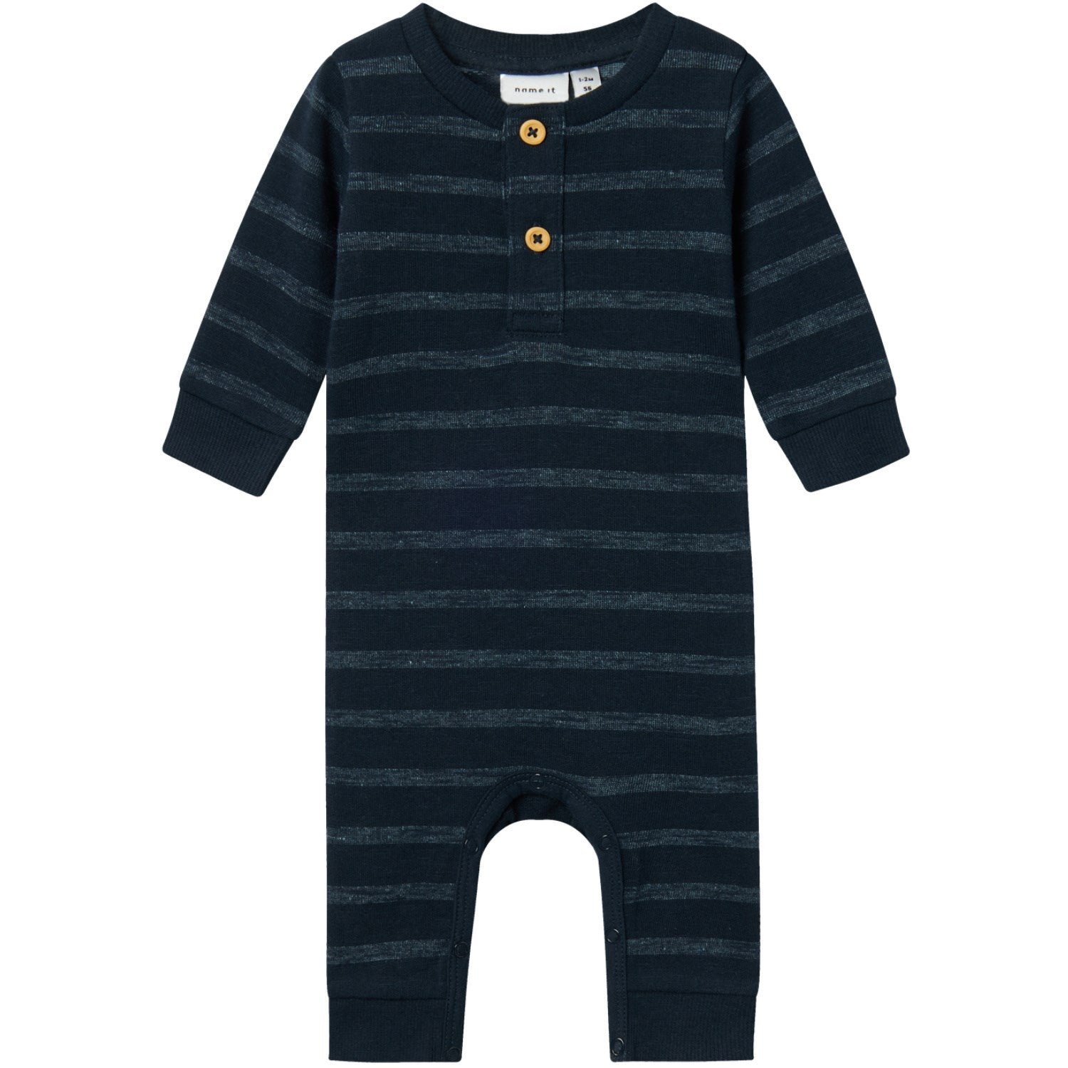 Kle barnet ditt komfortabelt og moteriktig med vår "Name It Dark Sapphire Sandel Onesie" heldress, perfekt for enhver anledning. Denne heldressen er laget av jersey-stoff, kjent for sin letthet og stretch, noe som sikrer at barnet ditt kan bevege seg fritt og komfortabelt. Stoffets myke overflate og behagelige innside gjør denne heldressen til en favoritt for både lek og hvile. Our onesie tilbyr ikke bare komfort, men også praktiske løsninger med trykknappfester for enkel av- og påkledning, samt sjarmerende knappedetaljer for en stilfull finish. Den dype, mørkeblå "Dark Sapphire"-fargen sammen med en ren design gjør dette plagget til en klassisk og allsidig del av barnegarderoben. Ta vare på heldressen ved å følge instruksjonene på vaskeetiketten, slik at ditt barn kan nyte komforten og utseendet lengst mulig. Med denne heldressen fra Name It er barnet ditt alltid klar for dagens eventyr, enten det er hjemme, i barnehagen, eller ute på tur.