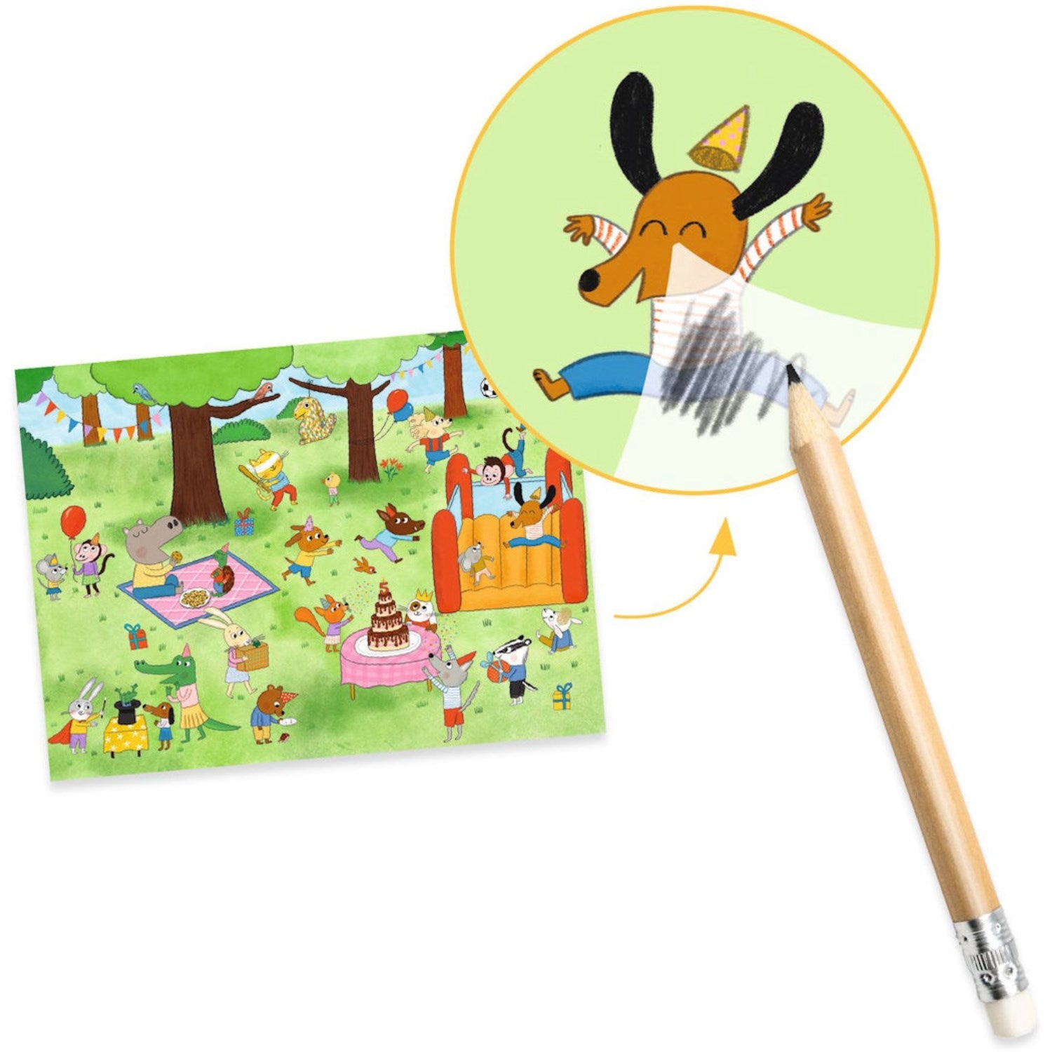 Djeco Decay, Party Time, er det perfekte leketøyet for kreative sjeler. Med tre forskjellige store bakgrunner og over 100 festlige rub-bilder kan barn utvikle finmotorikken og styrke sine kreative ferdigheter ved å designe scener fra bursdager, karneval og festivaler selv. Denne interaktive lekeaktiviteten styrker barnas beslutningsevne når de velger og arrangerer elementene, og er ideell for å engasjere hele familien i en morsom og kunstnerisk samling som bringer alle nærmere hverandre.