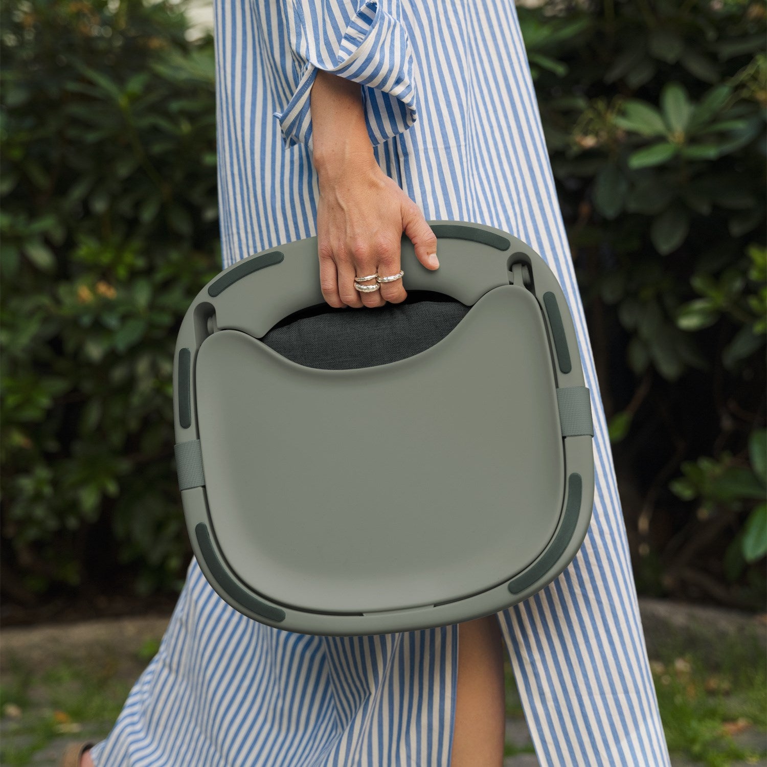 Hannie Sage Green er ikke bare praktisk, men også sikker; alle materialene er testet for skadelige stoffer av ledende testinstitutter. Med sin evne til å enkelt folde seg inn i et kompakt format ved hjelp av det integrerte brettet, er denne stolen ideell for små hjem og for familier på farten. Den leveres i nøye utvalgte fargekombinasjoner som passer til ethvert hjem.