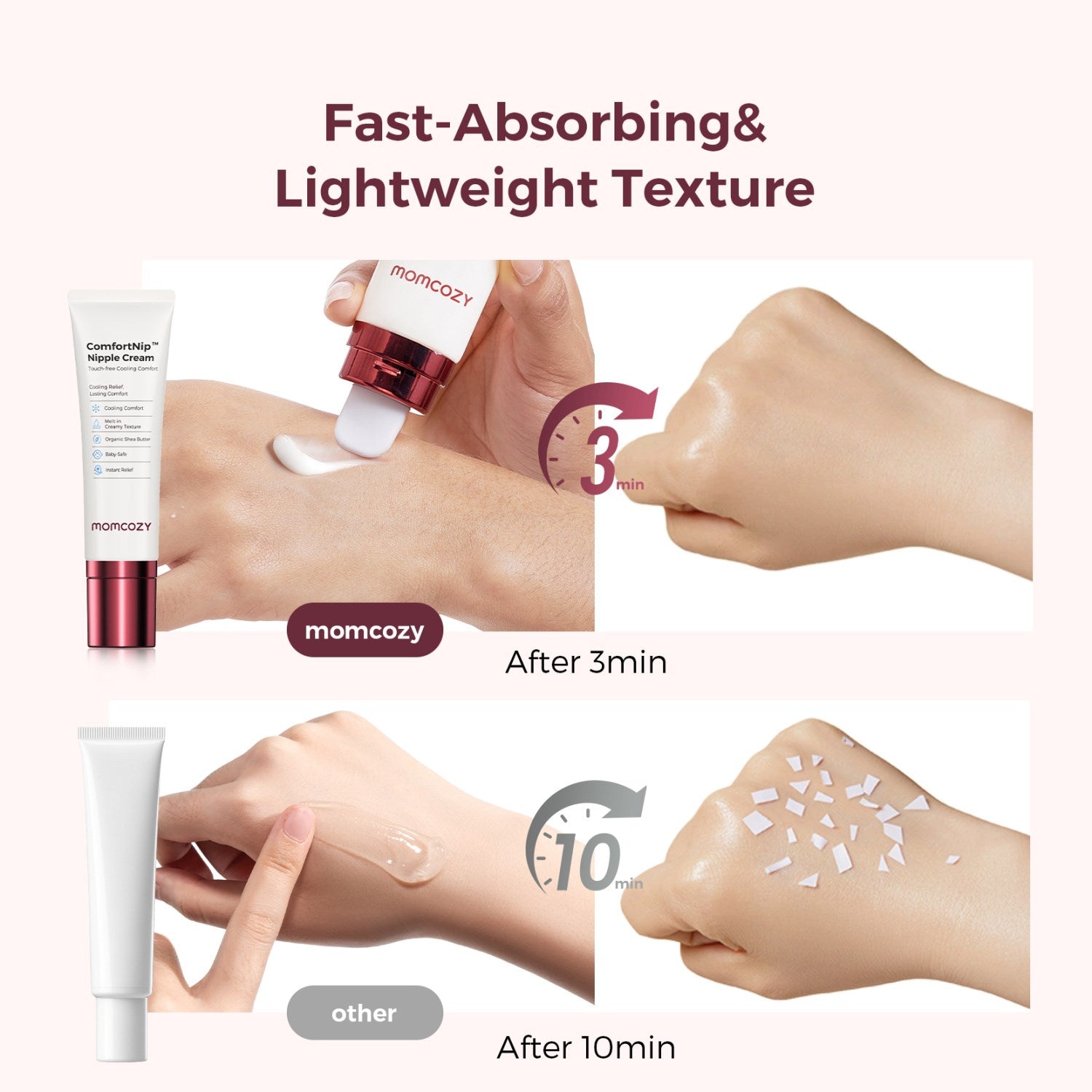 Gjør ammeperioden enda bedre og mer behagelig med vår 100 % naturlige morsmelkerstatning. Dette veganske produktet, fri for lanolin, er designet for å være skånsomt for både mor og barn. Den emulgerer raskt, noe som gjør påføringen enkel og sikrer dyp fuktighet uten å føles fet. Flott for daglig hudpleie, avslappende massasje eller som en del av din ernæringsrutine, denne rike kremen absorberes lett og etterlater huden glatt og myk.