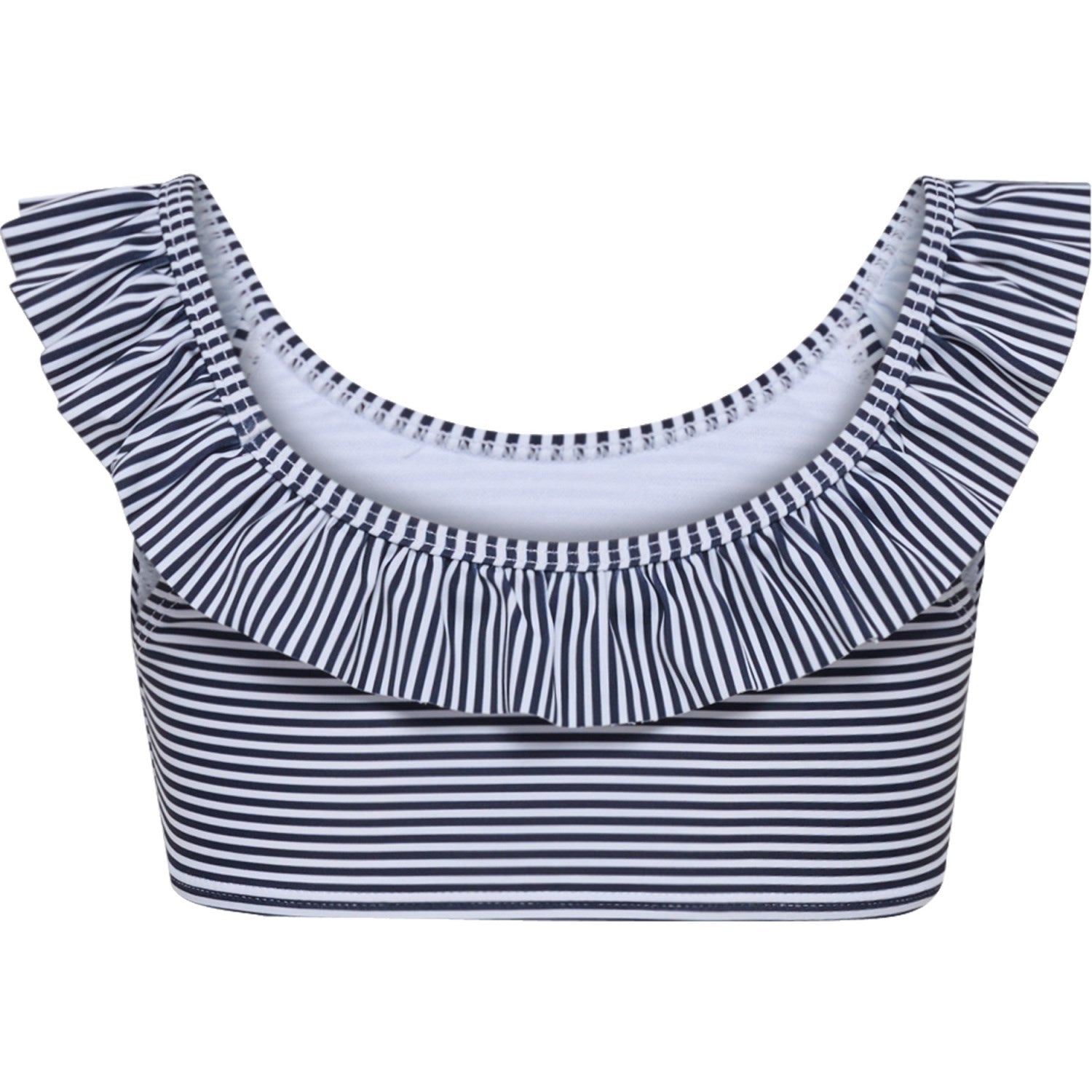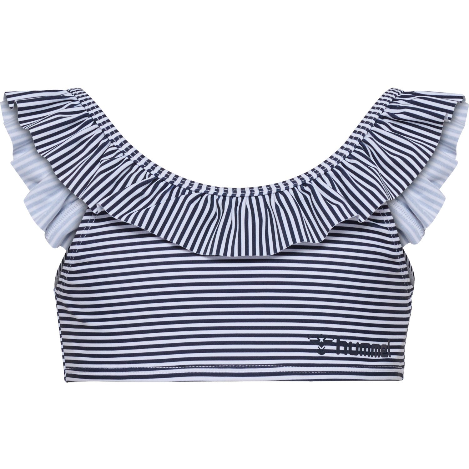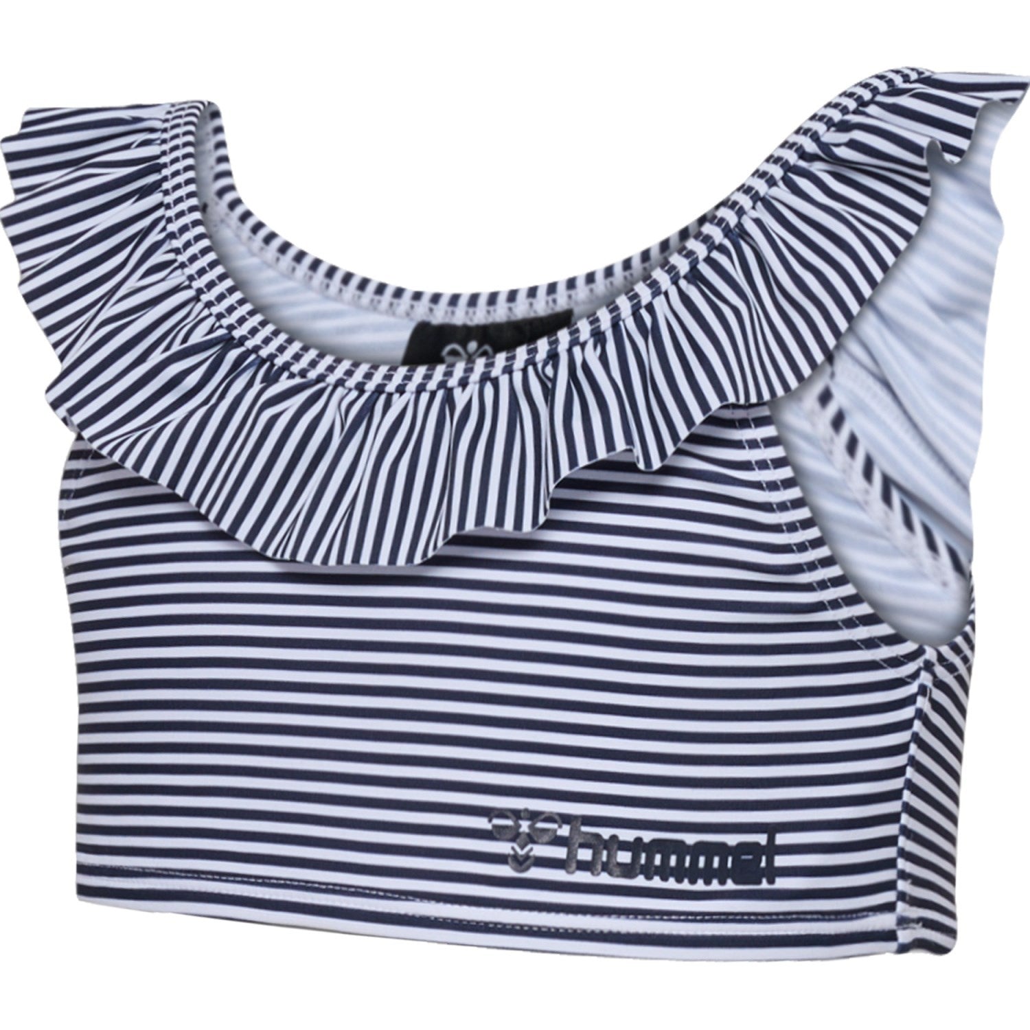 Gjør sommerdagen enda morsommere med hmlFRILLI BIKINI fra Hummel. Dette sjarmerende bikinisettet, sertifisert med STANDARD 100 by OEKO-TEX,® har et livlig stripemønster og søte volangkanter som vil få enhver liten vannelsker til å skinne. Det elastiske polyamidjerseymaterialet gir utmerket pusteevne og fleksibilitet for endeløs lek i vannet.