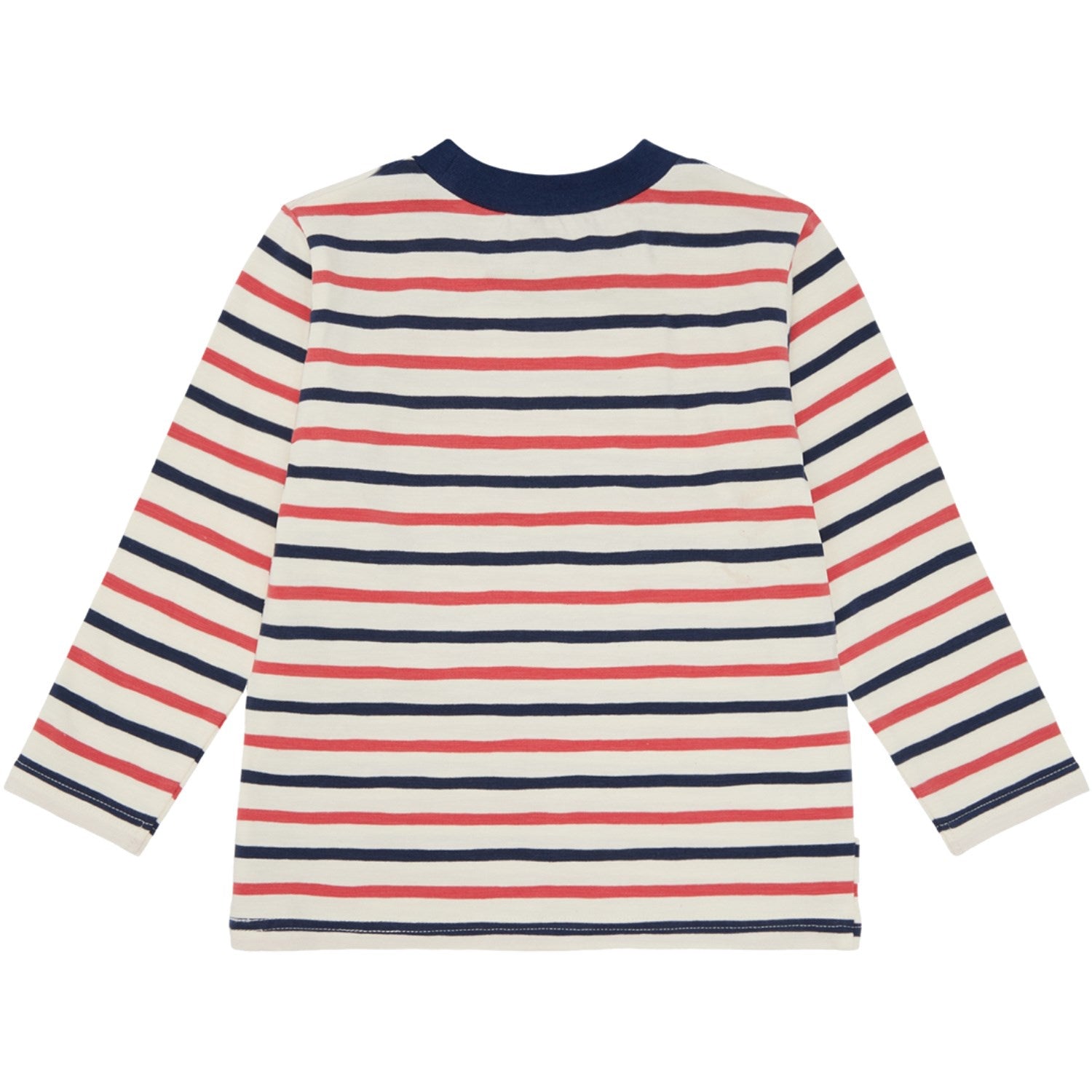 Gjør hverdagen litt mer fargerik med Hust & Claire Cranberry Anton Bluse! Denne langarmede T-skjorten er laget av elastisk bomull som garanterer komfort hele dagen. Designet skiller seg ut med et sjarmerende stripete mønster og en unik filtbrodert papirbåt på venstre bryst. Perfekt for aktive barn som verdsetter stil og bevegelsesfrihet. Lett å vedlikeholde, den holder seg flott gjennom utallige vask.