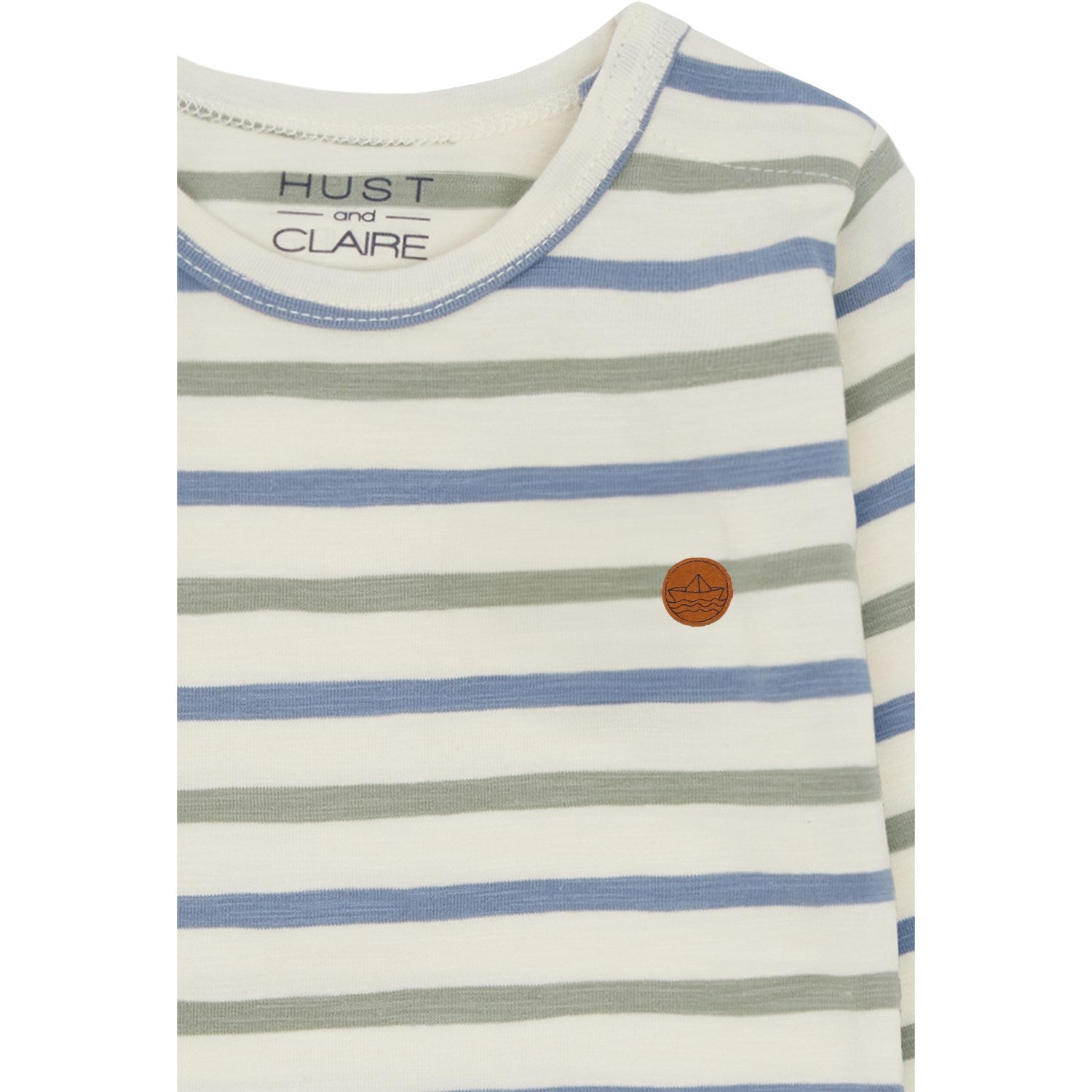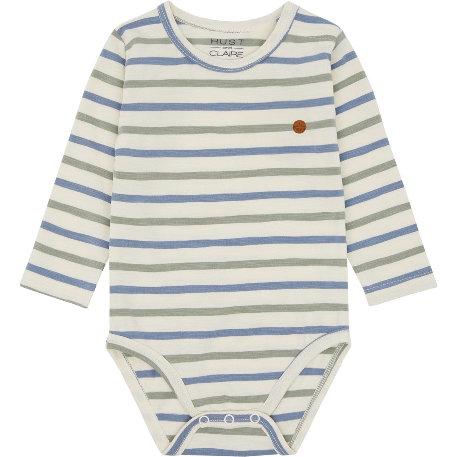 Gi ditt barn den ultimate komfort med Hust & Claire Seagrass Billy Bodystocking. Denne langermede bodyen er laget av elastisk bomull som føles myk mot barnets hud, hvor den følsomme babyhuden blir godt ivaretatt. Den har et sjarmerende stripete mønster og en nydelig, filtbrodert papirbåt på venstre bryst som tilfører et lekent preg.