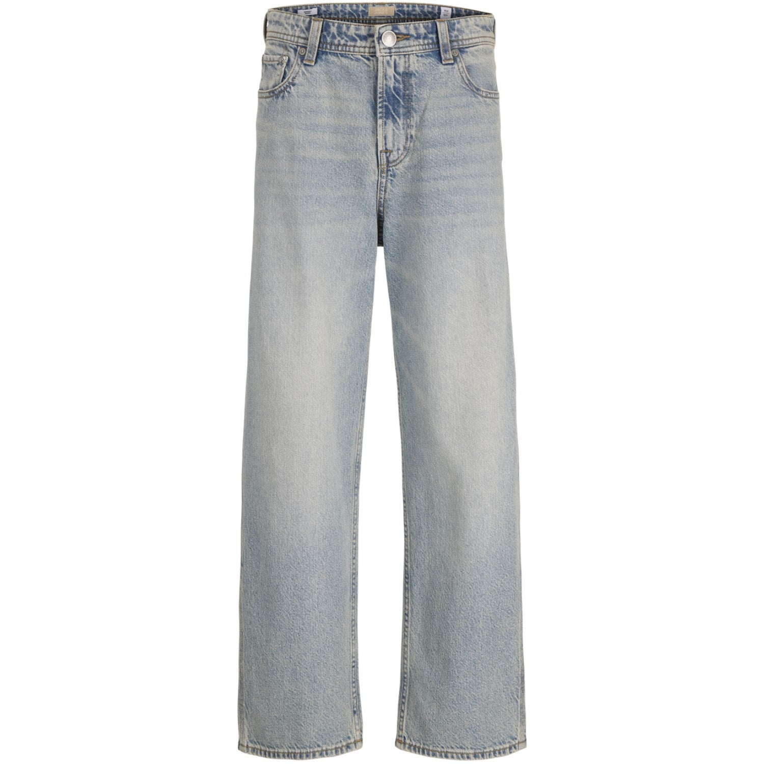 Lys opp hverdagen for de små med Jack & Jones Junior Blue Denim Jeans! Disse jeansene er laget av mykt denimstoff som sikrer komfort hele dagen, og den stilige designen med en frisk blåfarge passer perfekt til enhver anledning. Størrelsen og passformen er spesielt tilpasset barn, noe som gjør dem ideelle for både lek og skolebruk. I tillegg er de enkle å vedlikeholde, noe som garanterer at de ser bra ut vask etter vask. Gi barnet ditt både stil og komfort med disse allsidige jeansene! Passform: Posete Materialer: 68% bomull - i konvertering direkte til gård, 32% bomull, 32% bomull - resirkulert