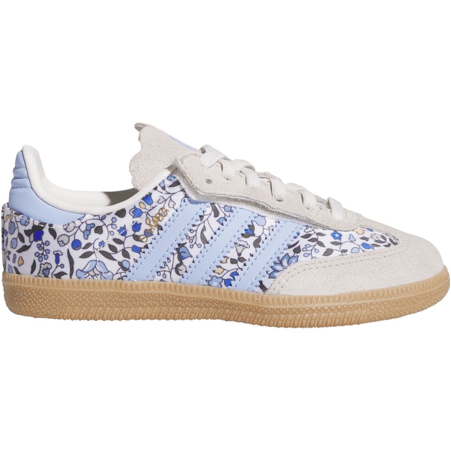 Adidas Originals Samba er perfekte både til lek og til mer formelle anledninger, takket være sin robuste konstruksjon og sjarmerende utseende. Velg disse sneakersene for et barneskovalg som kombinerer funksjonalitet med et unikt designuttrykk, og gi barnet ditt sko som de vil være stolte av å bruke! Lukking: Lisser, borrelås Passform: Regelmessig Materialer: Overdel: Syntetisk, Tekstil, Fôr: Tekstil, Såle: Gummi Ekstra: 3-striper i skinn med "SAMBA"-tekst som kvart merkemerking. Klassisk Originals tungemerke. Liberty London og Adidas Trefoil-merke på innersålen.