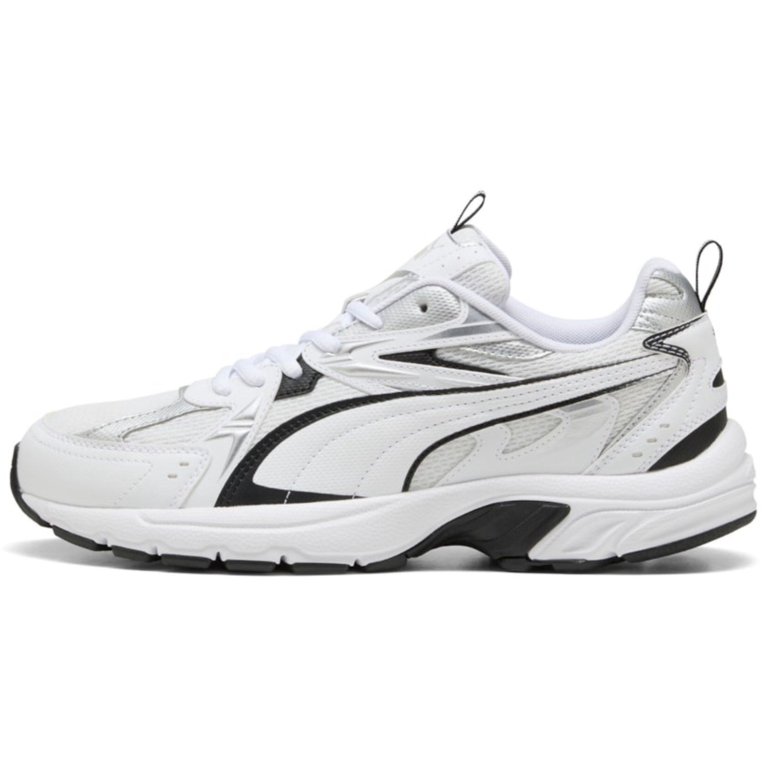 Øk barnets stil og komfort med våre Puma White Milenio Tech Sneakers! Disse joggeskoene er inspirert av løpesko fra tidlig 2000-tall, og har en fantastisk overdel som består av syntetisk skinn og netting, forsterket med metalliske detaljer for å fange den tilbakevendende stemningen. IMEVA-mellomsålen kombinert med en Softride+ innersåle sørger for at den lille nyter komfort hele dagen. Enten det er for skole, lekeavtaler eller uformelle utflukter, er disse joggeskoene en ideell blanding av retrodesign og moderne komfort!