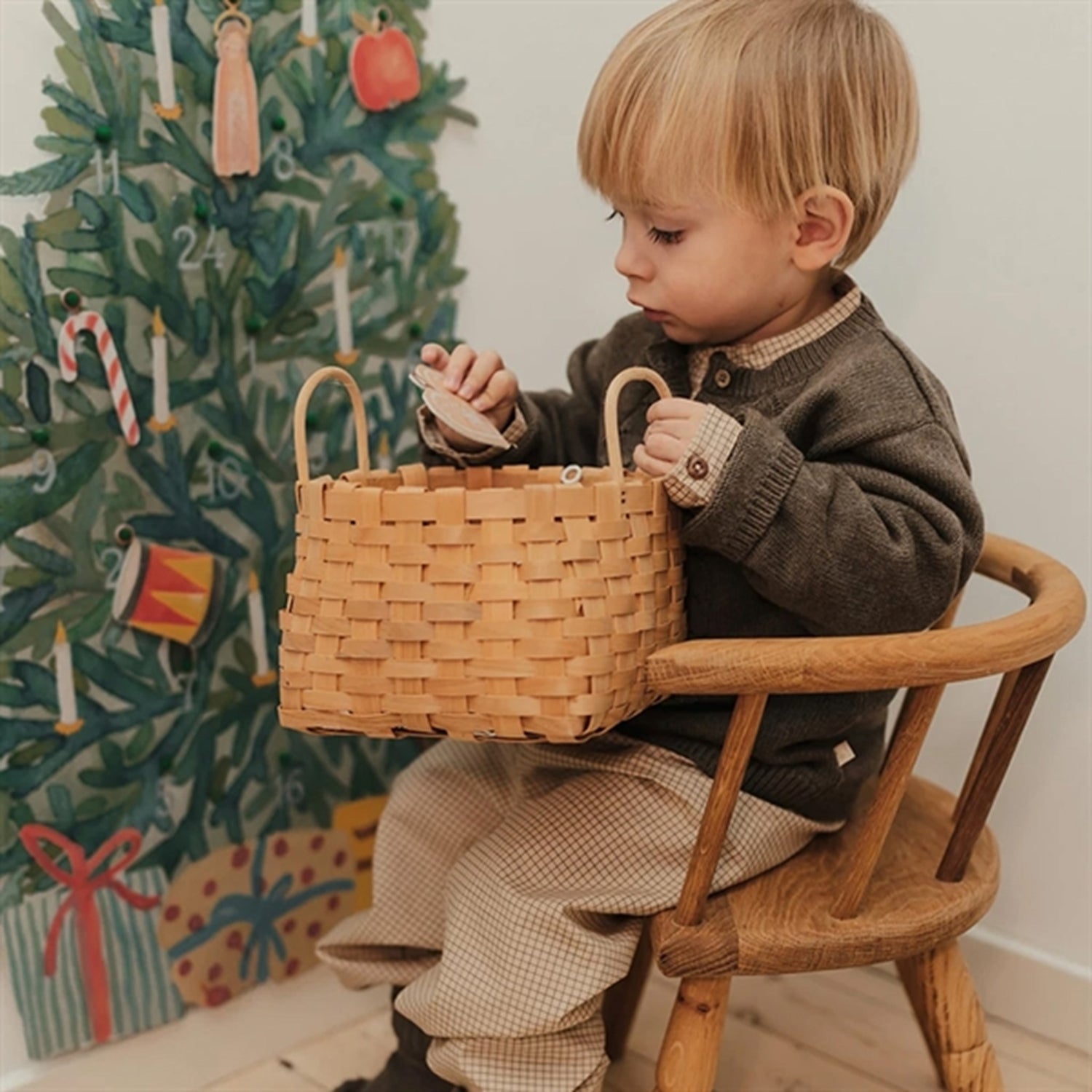 Den kommer med 24 fine figurer slik at barna kan pynte treet igjen og igjen.