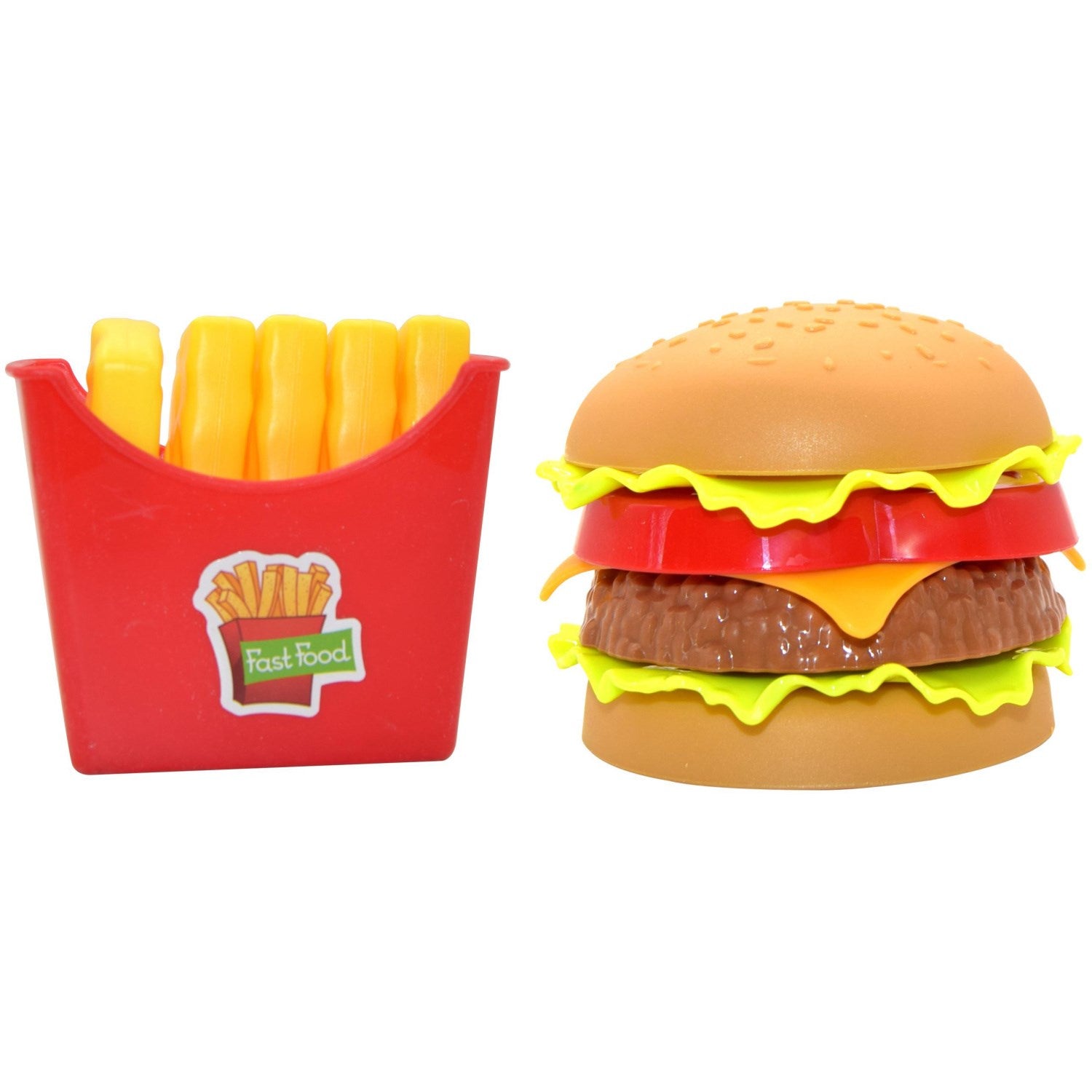 Oppdag gleden av lekekjøkkenet med vår Junior Home Burger Set! Perfekt tilpasset for barn fra 3 år, tilbyr dette settet en trygg og interaktiv måte å lære om matlaging på. Inkluderer en fargerik burger med biff, ost, tomat og salat, samt en pose med pommes frites, alt laget av holdbare, lett å rengjøre materialer. Ideelt for å fremme barnets kreativitet og finmotorikk, samtidig som det er enkelt å oppbevare og ta med på farten.