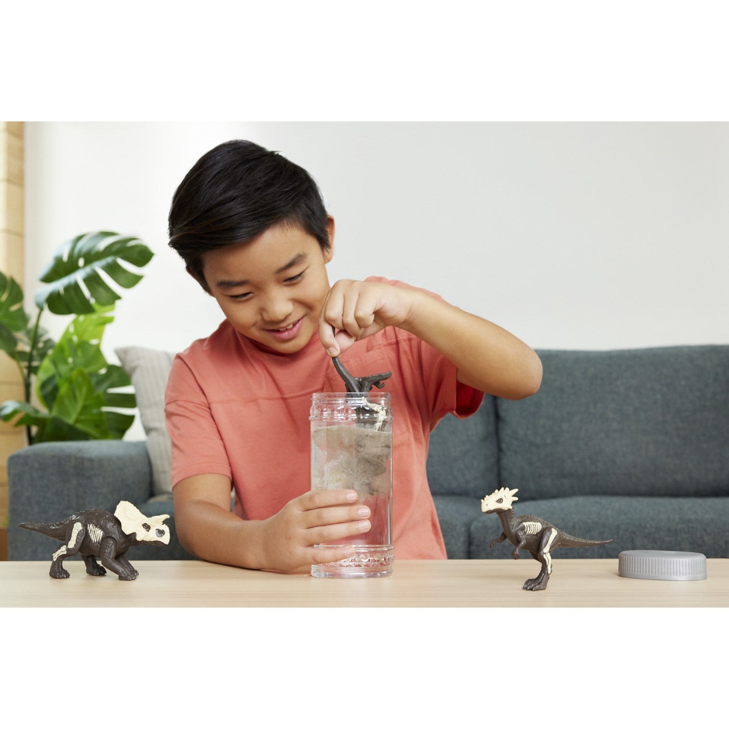 - Rør godt for å avsløre den fargerike dinosauren
