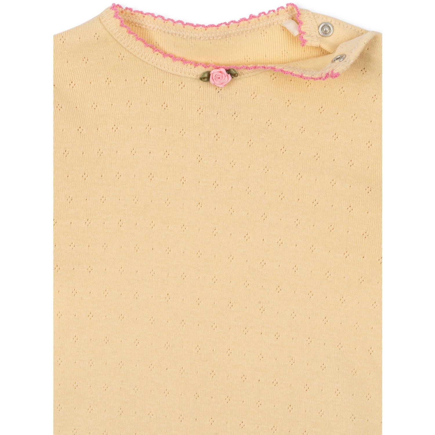 Oppdag Konges Sløjd Golden Fleece Minnie Body GOTS, en essens i barnegarderoben. Denne bodyen er fremstilt av 100 % økologisk bomull, og er både myk og behagelig. Med sitt sjarmerende pointelle-design og praktiske trykknapper i skrittet, forenkler den hverdagslige påkledningen. Den er GOTS-sertifisert (CU1094701), som garanterer en miljøvennlig og etisk produksjon. Perfekt til både lek og hvile, denne bodyen kombinerer komfort med holdbarhet og stil.