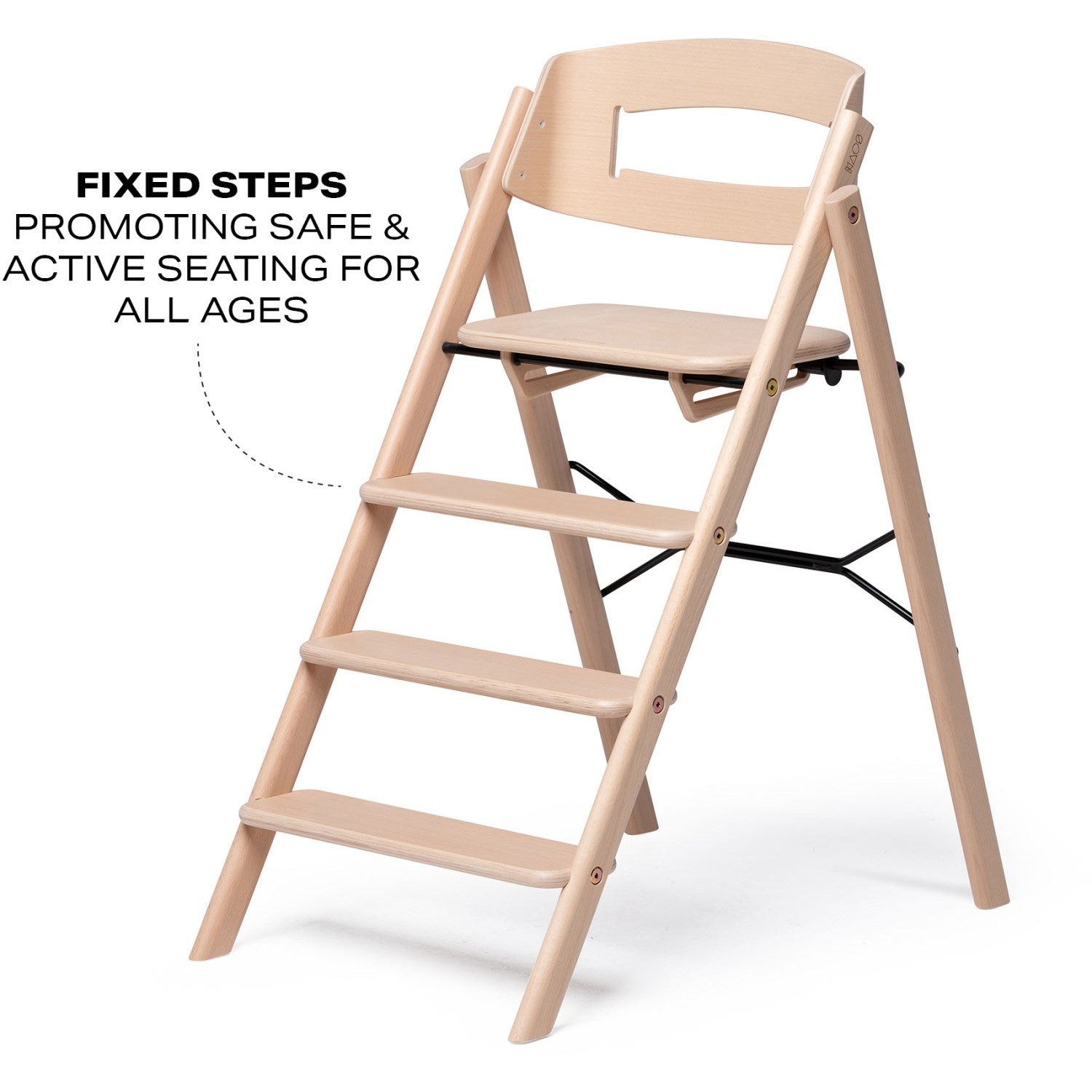 Oppdag KAOS Klapp® i Bøk – en sikker og praktisk barnestol som forener funksjonalitet med et stilrent design. Laget av FSC-sertifisert bøketre, er denne stolen ikke bare miljøvennlig, men også robust nok til å tåle opp til 110 kg. Designet som en trappestige, tilpasser den seg naturlig til barnets vekst og behov for bevegelse, og fremmer en aktiv og sunn sittestilling.