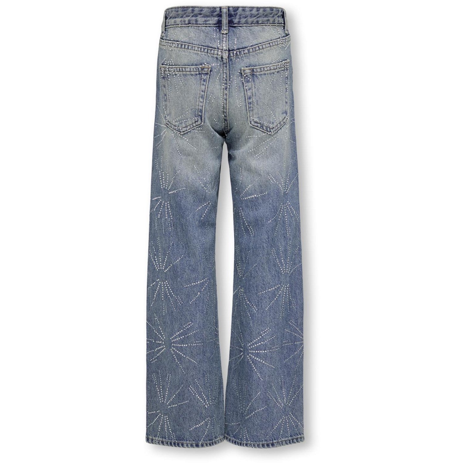 Gjør barnas garderobe komplett med et par stilige og komfortable Medium Blue Denim Hope Rhinestone Star Wide Denim Tai jeans fra KIDS ONLY. Dette anerkjente merket er kjent for sin trendy barneklær som kombinerer lekenhet med kvalitet.