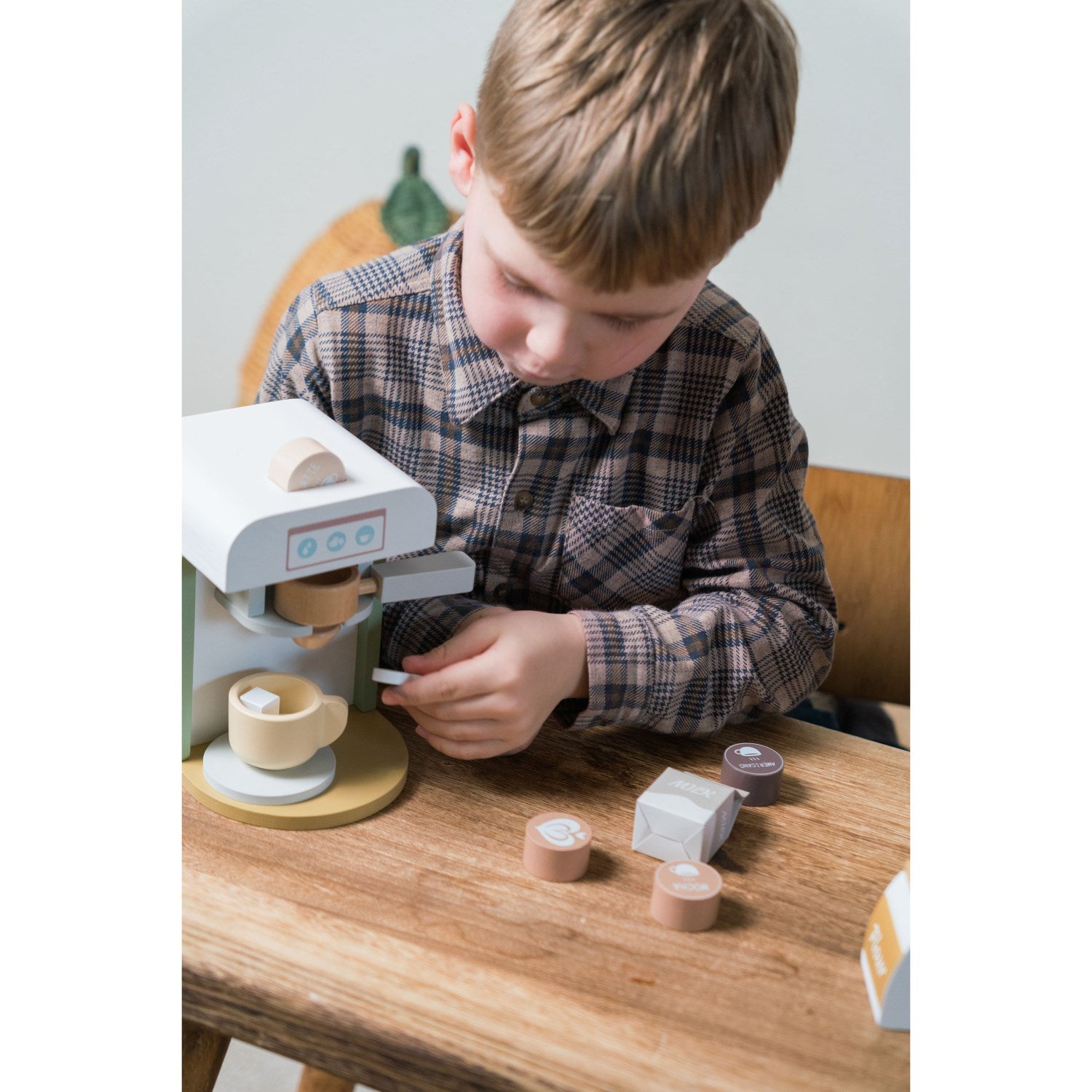 Gjør hver lekestund både lærerik og underholdende med Dantoy Kaffetrakter Wood XL! Dette sette er perfekt for små kjøkkenmestere og inneholder 13 deler av høykvalitets tre i en elegant gaveeske. Designet for å etterligne voksenaktiviteter, dette lekesettet fremmer sikker og kreativ lek med sine barnesikrede funksjoner og ikke-små deler som er trygt for barn fra 3 år. Det interaktive designet med bevegelige elementer som knotter, forbedrer motoriske ferdigheter og forståelsen av årsak og virkning. Lett å bære, lagre og vedlikeholde, gjør dette kjøkkentilbehøret til en ideell følgesvenn for den nysgjerrige oppdagelsesreisende.