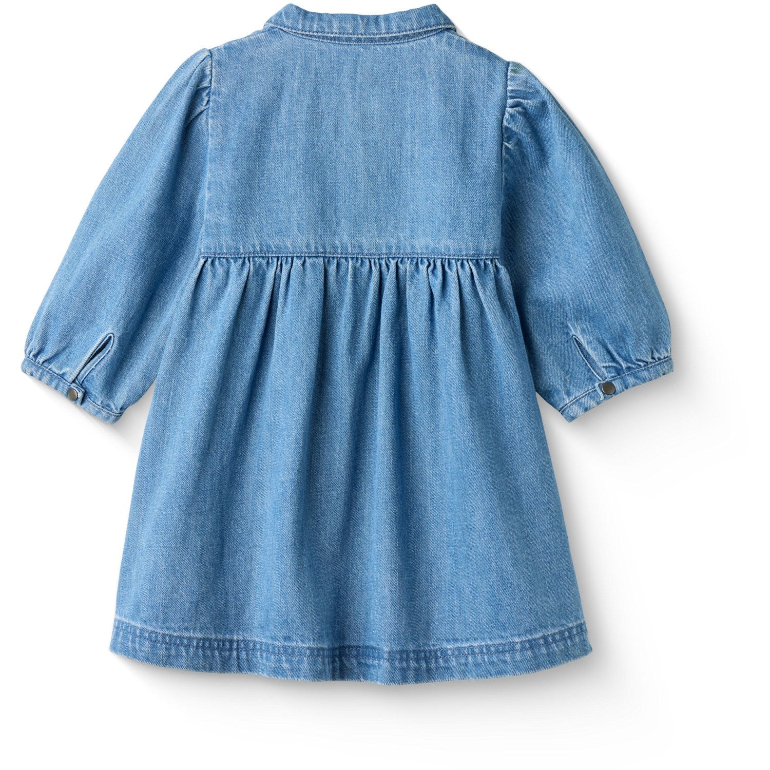 COPENHAGEN COLORS Indigo Blue Washed Organic Denim Kjole W. Puff Ermer