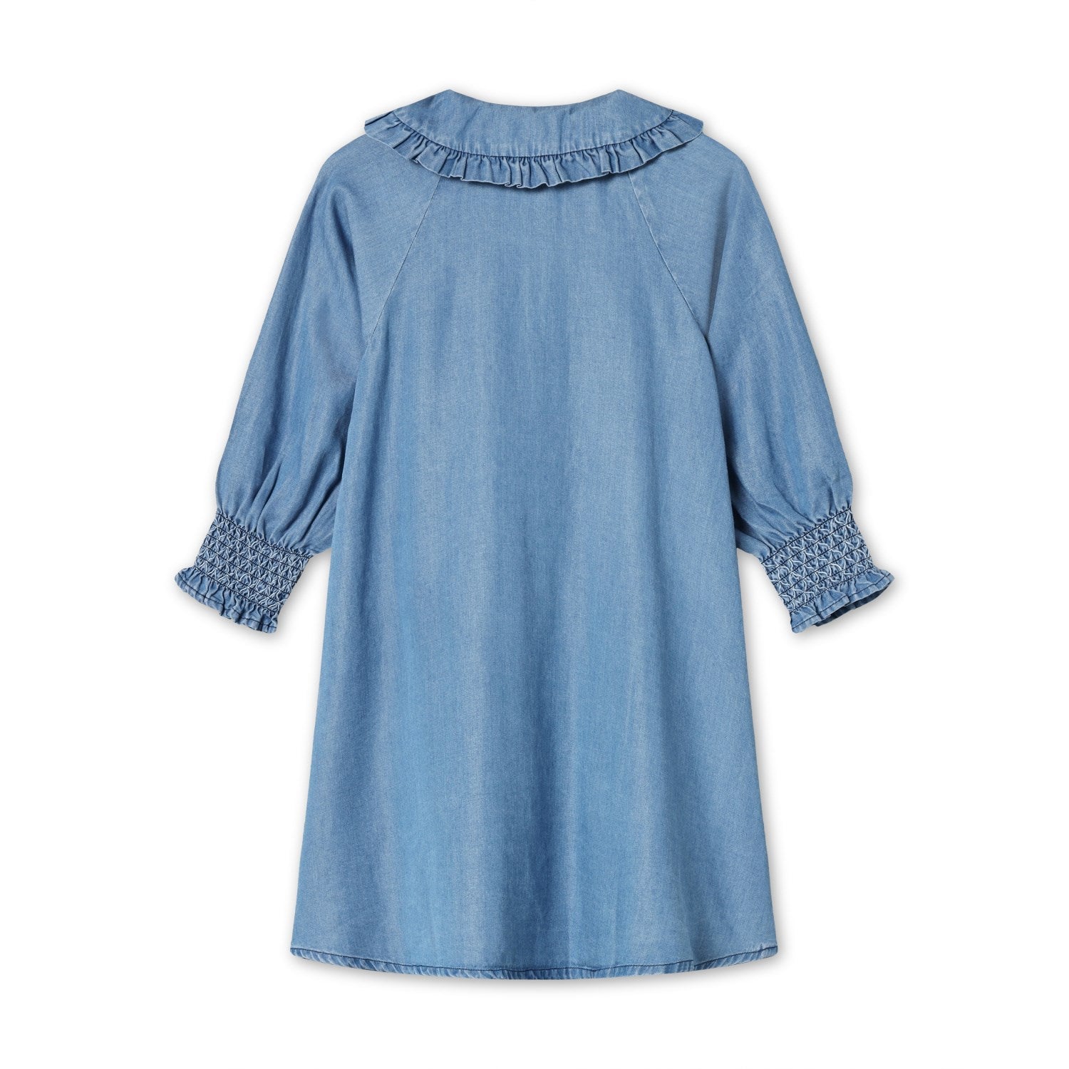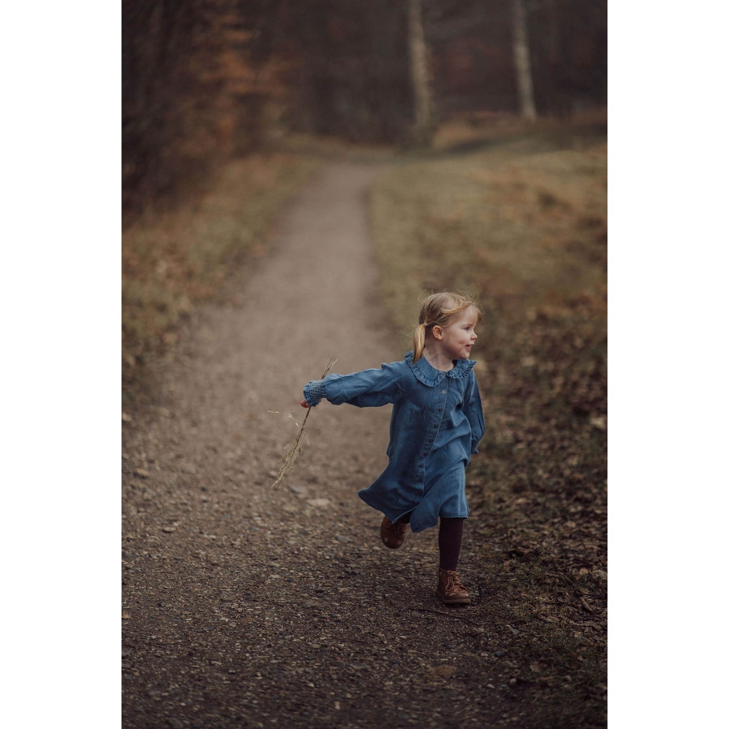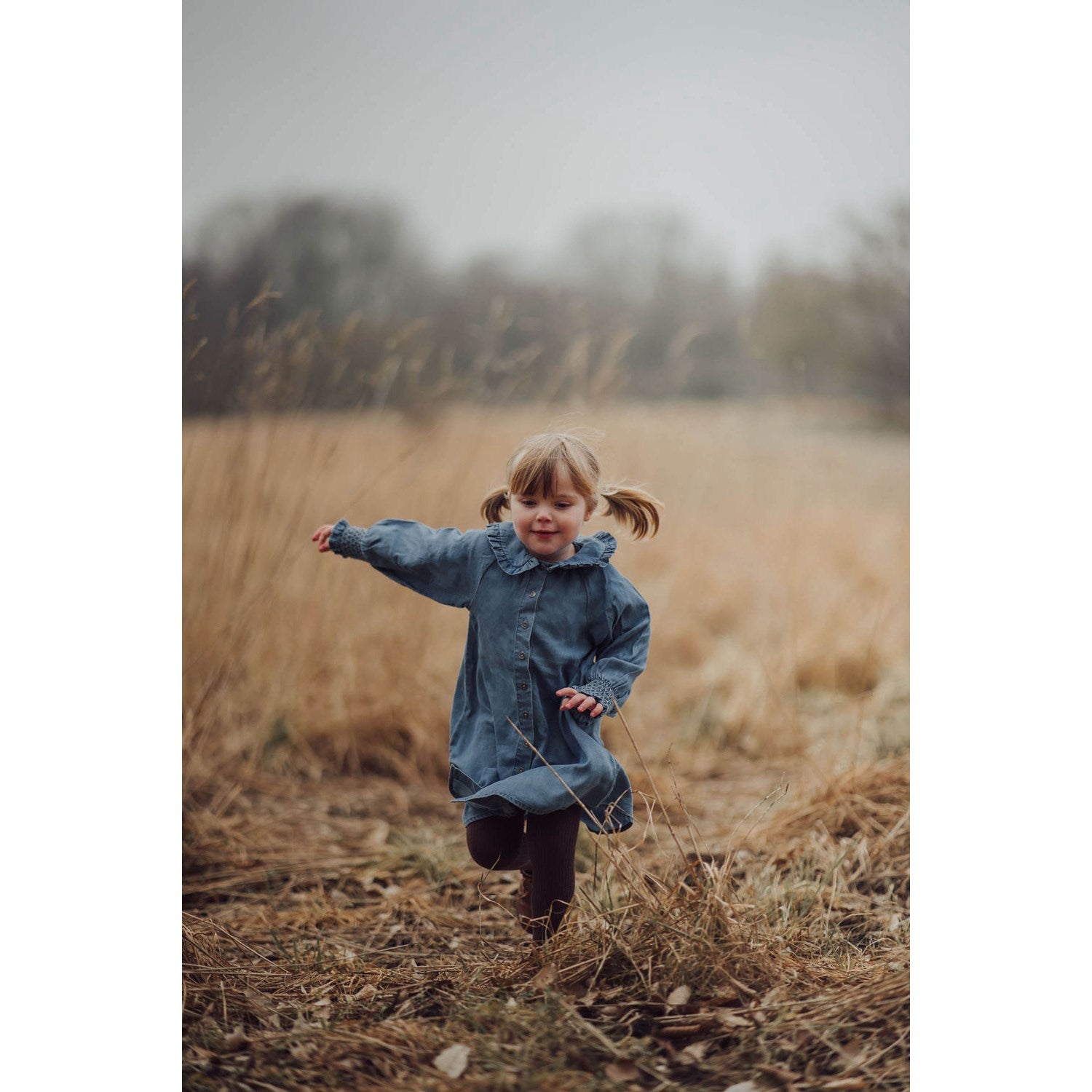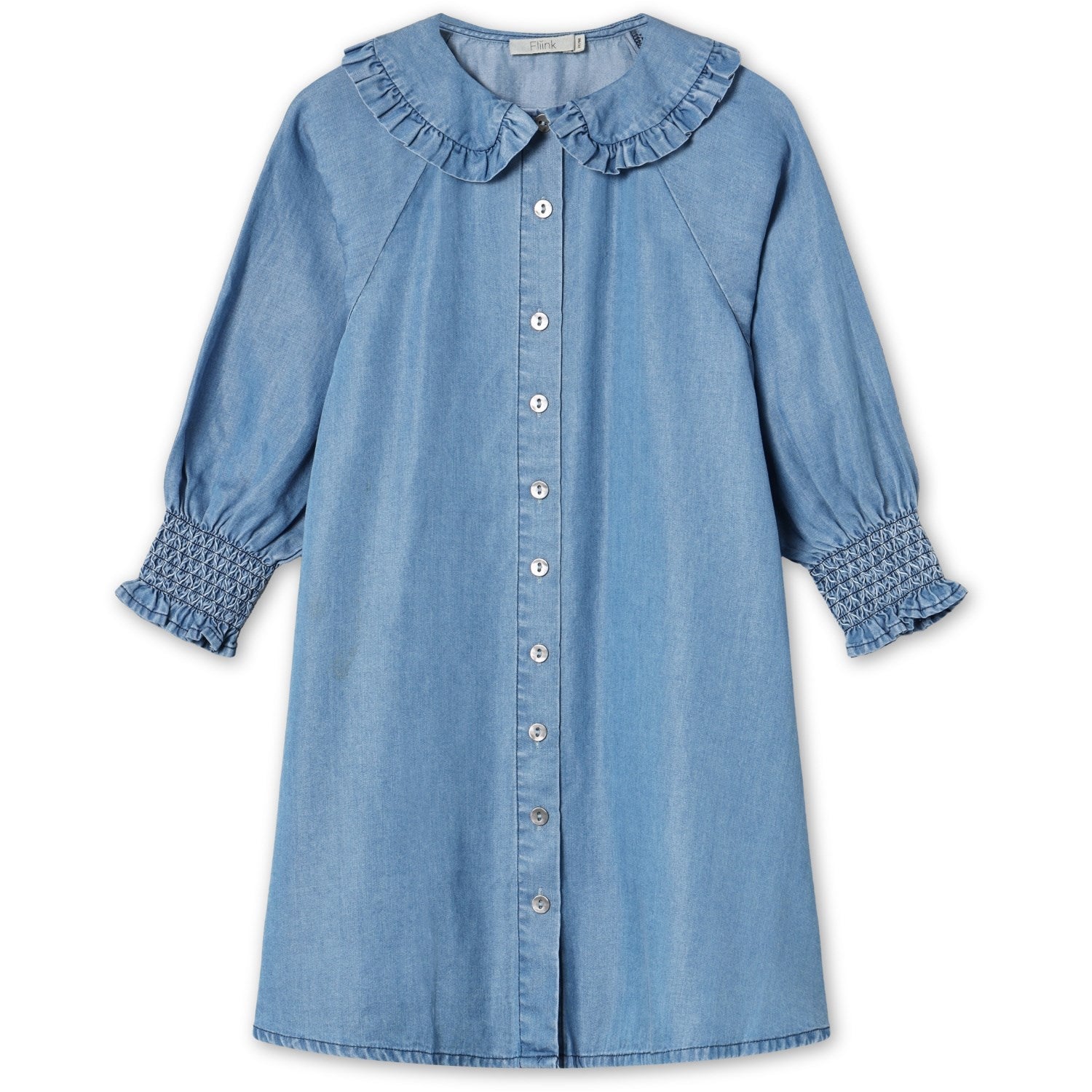 Oppdag den sjarmerende Fliink Dream Blue Balou Ls Kjole for de minste! Denne myke, langermede kjolen kommer med en elegant volangkrage og er prydet med delikate metalldetaljer på knappene. Kjolen skaper en luftig, oversized silhuett perfekt for lek og moro. Laget av 100% Tencel, garanterer den å holde seg like myk vask etter vask. Med sin vakre broderidetaljerte vaffelsøm og elastiske ermeender, kombinerer denne kjolen både stil og komfort. Den ideelle dressen for enhver anledning, som er enkel å vedlikeholde med maskinvask på 30°C og flat tørking. En durabel og funksjonell investering i barnets garderobe som vil vare lenge.