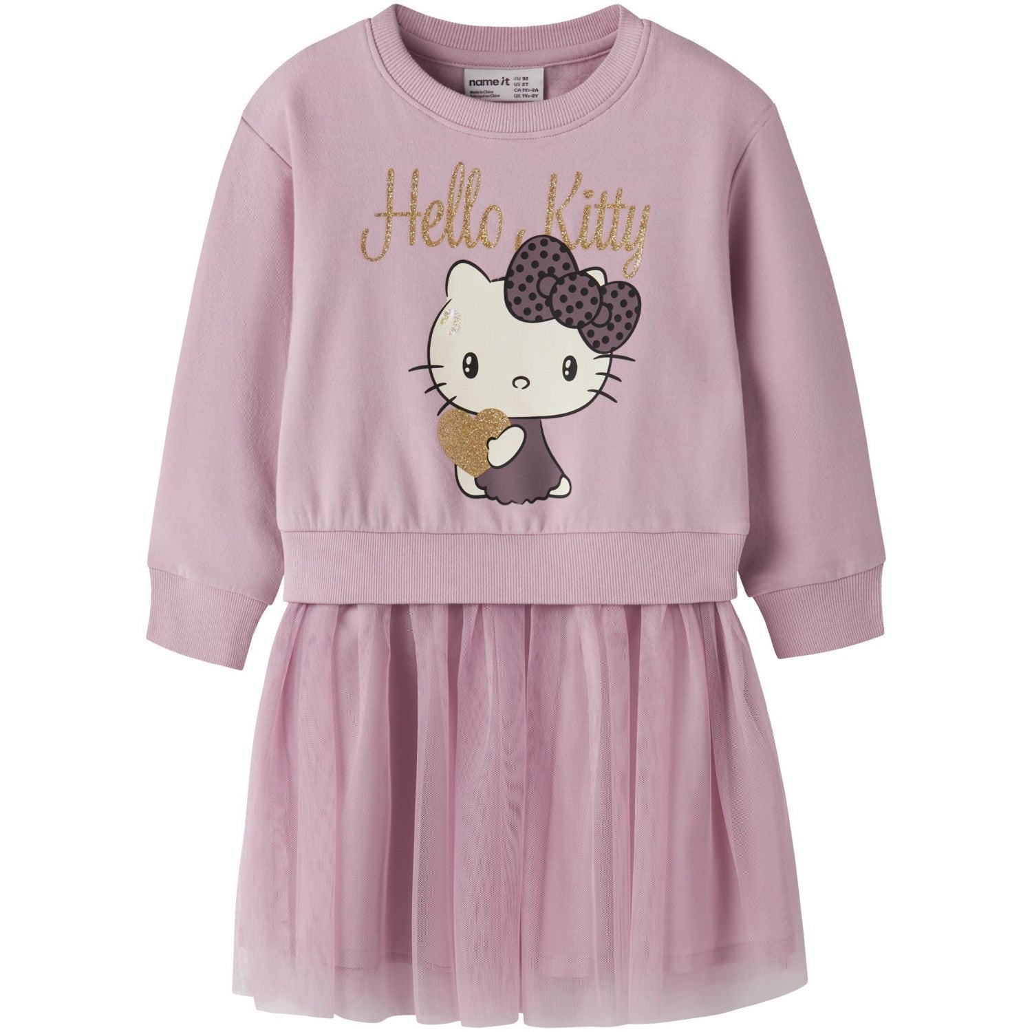 Gjør hverdag og fest ekstra spesiell med vår sjarmerende "Name It Keepsake Lilac Nmfobana Hellok Nreg Swe Dress Bru Sky". Denne kjolen, med sin ikoniske Hello Kitty-design, er et perfekt valg for din lille venns garderobe. Utformet med en behagelig standard passform og lange ermer med ribbestrikkede mansjetter, sikrer den både stil og komfort. Halsen er rund og gir en klassisk og søt look. Kjolen er pyntet med fine glitterdetaljer og et mykt gummitrykk av Hello Kitty, noe som skiller den ut. Den lilla fargetonen og det søte mønsteret er ideelt for lekne dager eller små sammenkomster. Suveren til daglig bruk takket være enkel vedlikehold og holdbar materialekvalitet. Oppdag gleden ved daglige eventyr med denne allsidige og stilige kjolen!
