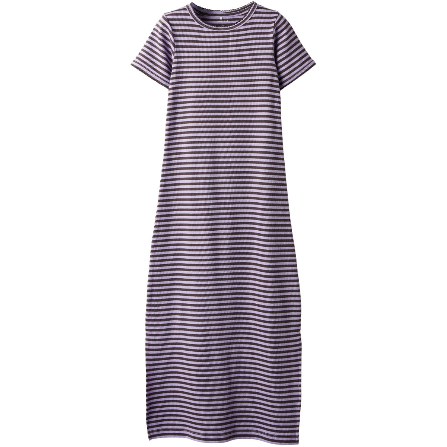 Frisk opp lilleprinsessen sin garderobe med Name It Lavendula Nkfhelina Ss Kjole. Denne søte kjolen kombinerer stil og komfort med sitt ribbestrikkede materiale som har vertikale, stripete mønstre og fremragende elastisitet. Designet med korte ermer og en klassisk rund hals gir et tidløst uttrykk, mens sidesplittene tilfører en leken detalj. Med sin normale passform, er denne kjolen ideell for alt fra familiefester til leketid i parken. Enkel å ta vare på, denne kjolen er et must-have i enhver barnegarderobe.